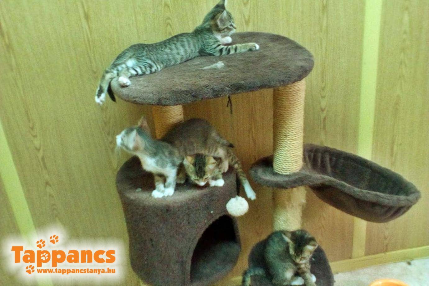 Ezután minden nap kedveskedtek a kicsiknek játékokkal, próbáltunk fotót készíteni róla, de esélytelen volt a nagy rohanásban megörökíteni őket. Mindenesetre nagyon szépen köszönjük a csilli-villi és házilag készített cicajátékokat, kuckót, imádják a kicsik! Persze nem csak a kicsik. Takarításkor Kázmér kiosont és első útja a kölyköknek készített pihe-puha, tükörrel és plüssel felszerelt fekvőjükbe vezetett. Befoglalta, egész testtel.
