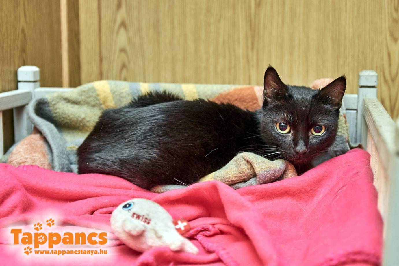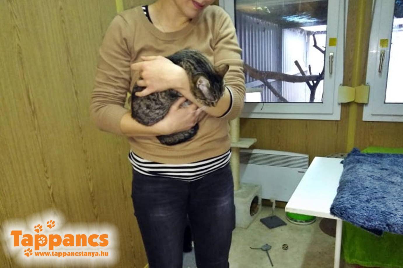 Fiatal pár cicanézőbe érkezett. Pannikához jöttek, de aztán összetalálkozott a tekintetük Jankával. Kölcsönös szerelem volt első látásra mindhármuk részéről. Janka nem az a tipikus ölben maradós cica, de most szétfolyt leendő gazdija karjaiban, úgyhogy a végső döntés hamar megszületett.