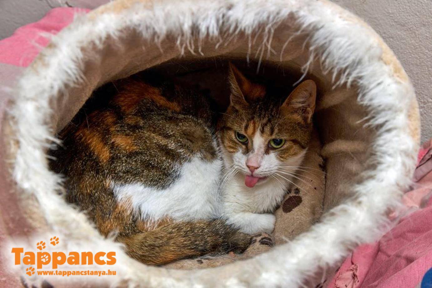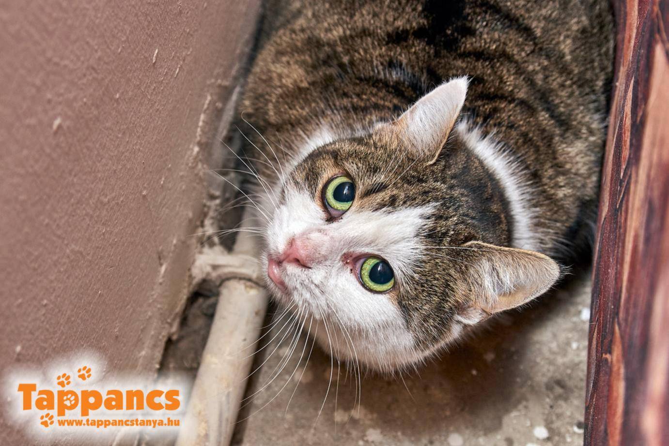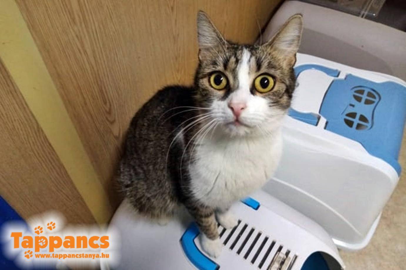 Majd ahogy haladtunk előre a napokkal és mindenkit átjárt a szeretet ünnepe, egy szempillantás alatt minden megváltozott. Kollégáim csütörtökön munkába érve egy dobozra lettek figyelmesek a menhely kapujában. Azt hitték tárgyi adomány, de ahogy közelről megnézték, egy üres doboz, rajta a felirat "1 fiatal macska", borítékban a szokásos 3000 Ft. Viszont a doboz üres. Pont ezen a hajnalon esett a hó is, de ha nem is esett volna, a nyirkos időnek, a papírdoboznak és a bepánikolt cicának köszönhetően ki tudott szökni a dobozból.