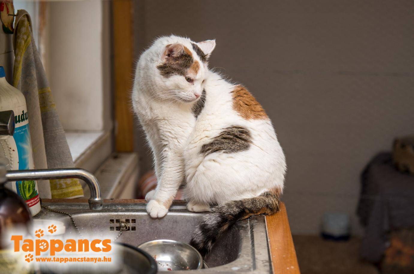 Pénteken amint megtörtént az egészséges cicák etetése, az immunhiányos cicák következtek. Félix elsőre még nem volt aggasztó, közelebb érve már kezdett összeszűkülni a gyomor...  Ott feküdt csak szomorú szemekkel. Enni megint semmit sem akart, fel sem kelt, olyan meggyötört volt. Igaz, fogyott is az utóbbi időben, de ennek ellenére állandóan jött-ment és szerdán délután még jóízűnek falatozott. Azt is tudtuk, hogy a szája kezdett elrákosodni, ezért maximálisan figyeltünk arra, hogy fogyasztható legyen számára az étek. Hosszú órák teltek el, pontosabban két óra, de nagyon-nagyon soknak tűnt míg konzultáltunk állatorvosunkkal. A szteroid injekciónak hatnia kellett volna... Megállás nélkül, felváltva néztük, hogy mi lenne a jó megoldás. Mert abban biztosak voltunk, hogy őt aznap beviszik a rendelőbe, csak abban nem, hogy miért. Aztán az egyik látogatásánál nagy nehezen felkelt és imbolyogva elsétált a vizes tálig. Akkor vált tisztává, hogy ereje elfogyott, ezért fájó szívvel meghoztuk a döntést. Félix FIV+, azaz macska AIDS-es cica volt, ki korábban utcán élt. Több, mint két évet élt a menhelyen és bátran állíthatom, boldog és igazán karakán egyéniség volt. A korábban kekec, balhégenerátor, Sanyit terrorizáló kandúr egyik pillanatról a másikra egy kenyérre kenhető, simulékony cicává vált, és örök barátságot köttetett Sanyival, kivel elválaszthatatlanok lettek. Azóta Sanyi sem találja helyét és a lakrészük hangulata teljes mértékben megváltozott...