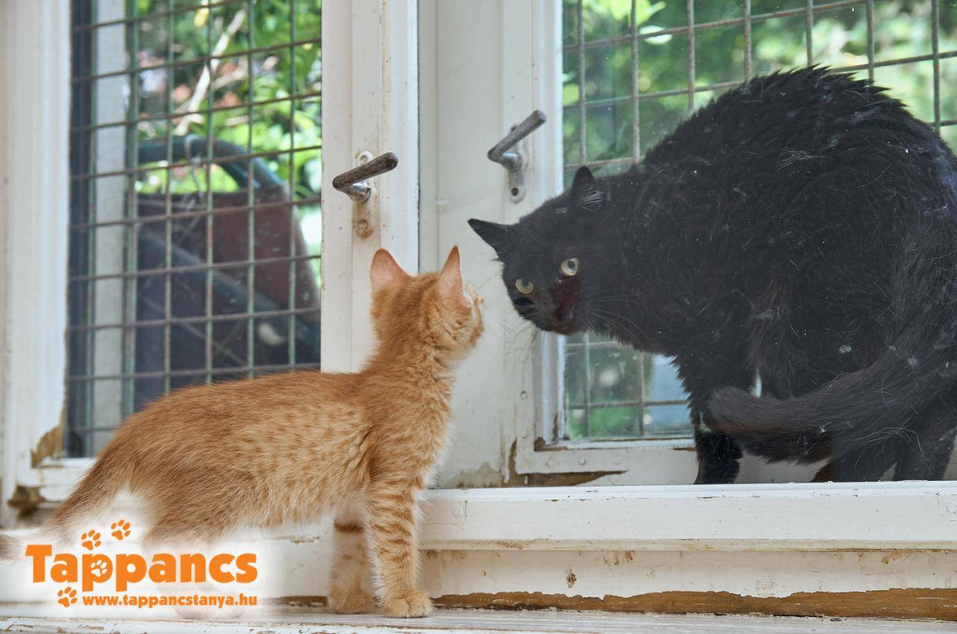 Elsősorban azért rá esett a választás, mivel kitaláltuk, hogy a kölyköket majd a felkészítő szobában fogjuk összeengedni. Ahhoz viszont neki mennie kellett, mivel ő nem híres a végtelen türelméről és próbáltuk minimalizálni a stresszforrásokat minden oldalról. Ennek fényében Roberta és Robika át is költözhetett Mokka és Merlin mellé. Ők nyugodtak, inkább kihátrálnak minden esetleges konfliktusból és hátha a kicsik mellett ők is jobban megnyílnak. A tesók érkezte előtt azért átesett a szoba egy nagytakarításon, valamint némi módosítást is véghez vittünk. Ebben segítségemre volt Melinda önkéntesünk, amit nagyon szépen köszönök Neki! Némi bútormozgatás, változtatás és átrendezés után az ablakokon lévő rácsot szúnyoghálóval fedtünk be, hogy még véletlenül se dugják ki buksijukat a kicsik. Mondanom se kell, nagyon élvezték a teret, mindent körbefutkostak és a felnőttekhez is kedvesen közelítettek.