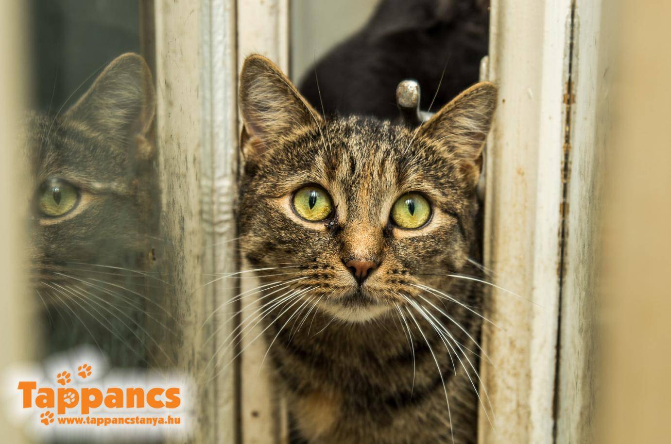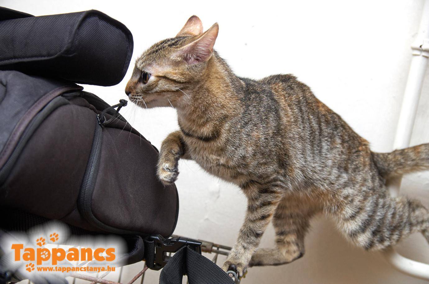 Másnapra cicát vártunk várólistáról, viszont beelőzte egy nem várt cicalány. A fiatal cirmos egy udvarba tévedt be, vélhetően az ott élő kutyától riadt meg és mászott fel a fára. Több, mint egy napot töltött fent, mire nagy nehezen sikerült leszedni a fáról (gondolom, nem sokat segített a kutyus jelenléte sem, mert mindvégig a fa alatt őrizte kíváncsi barátunk minden mozzanatát). Megtörtént a cica begyűjtése, körbe járták vele a környéket, de senki nem ismerte fel, nem vallotta sajátjának, ezért végső megoldásképp kihozták a menhelyre. Mivel a korábban várt 3 felnőtt cicát nem hozták ki, ezért az ő helyükre el tudtuk szállásolni a hirtelen jött leányzót, aki a Kátya nevet kapta. Kátya valóban egy örökmozgó, fél év körüli csupa báj és kíváncsiság, aki nem utolsó sorban tüzel, így nem csoda, hogy kalandozni indult otthonról...