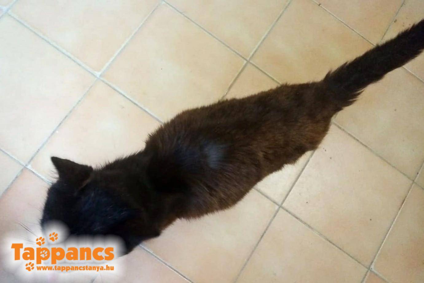 A nemrégiben átköltözött Frappé kezd aklimatizálódni és rájönni, hogy a lehető legnyugisabb részen ismerkedik a cicák társaságával. Eleinte morgolódott és levegőbe paskolt, de a többiek kifordultak ezekből a helyzetekből, senki nem vette fel vele a kesztyűt, így ő is ráhagyta. Azóta pedig csak akkor zsémbeskedik, ha simogatás időben a többiek is ott tolonganak. Jutalomfalatozás közben próbáljuk megértetni vele, hogy a többiek közelsége nem veszélyes. Akkor nincs is gond, nyugodtan megy az összeszimatolás is, hisz a kaja teljesen kikapcsolja a morgóját. A siminél önző picit, ha nem csak rá hárul az összes figyelem, de ez legyen a legnagyobb hibája.