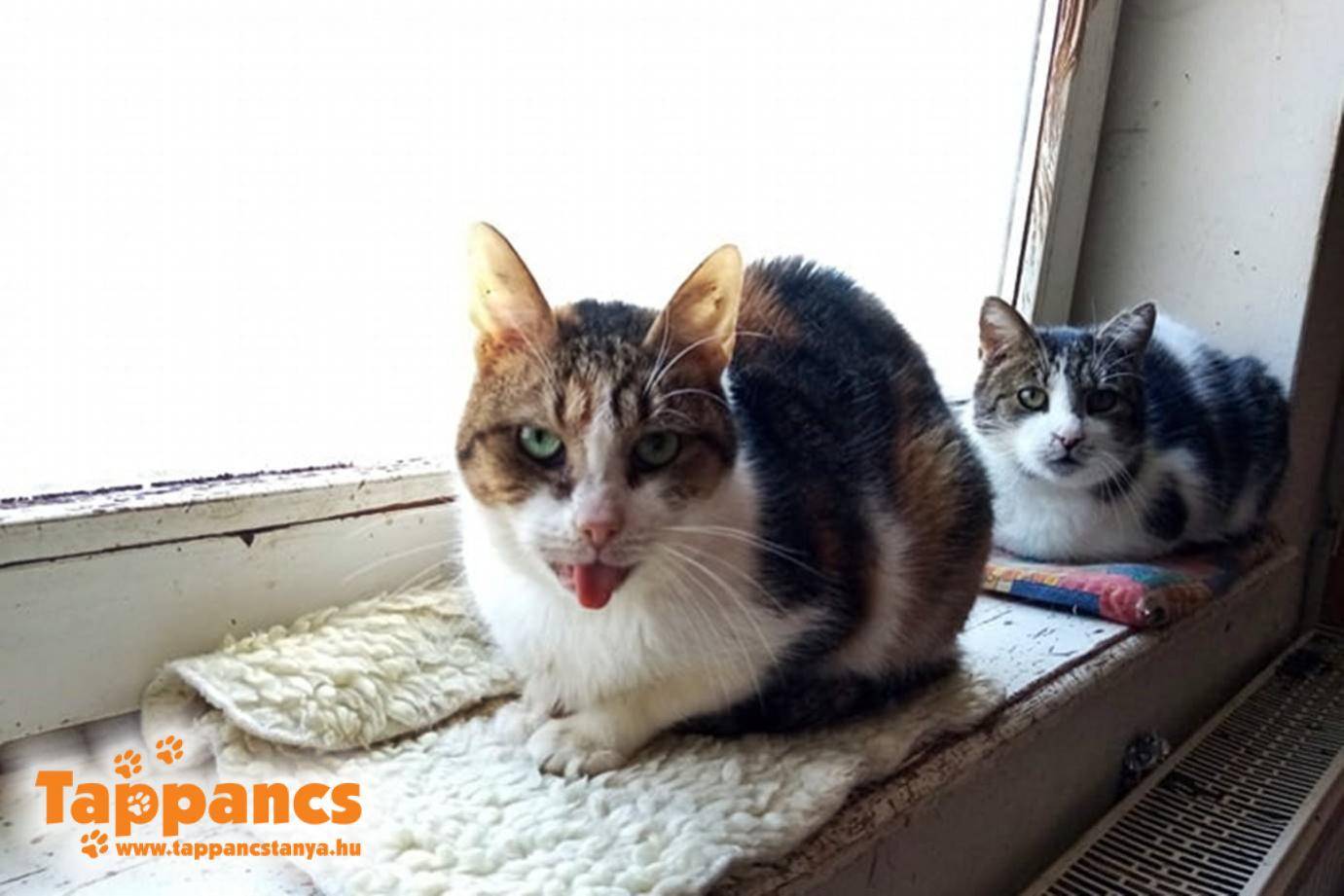 Ahogy az lenni szokott, idős néni megszánta az odajáró cicát és őt is etette, aki végül előhozakodott a kölykeivel. A szomszéd lakók otthagyták magára, a melléképület padlásán éldegélt, mindig oda vonult vissza, csak kis élelemért és simiért ment át a nénihez. Aztán ahogy a kölykök cseperedtek és nem volt elegendő számukra az anyjuk táplálása, már négyen jelentek meg az etetésnél. Nem volt kis energia a kölykök szocializálása, de kettejüknél nagyon jó eredményeket ért el, amit hálásan köszönünk neki. A harmadik tesót is próbálja betörni, de egyelőre ellenállásba ütközik. Bízunk benne, hogy a tesók nélkül csak jobban keresi majd a társaságot és elkezd nyitni a néni felé. A kicsik cukik, elvenek, játékosak, kb. 4 hónaposak és a Bolyhos és Blans nevek büszke viselői.
