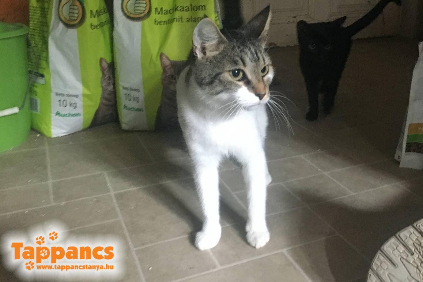 A másik fiatal nőstény a Trina nevet kapta, ő a két nagyobb kölyökkel lett elhelyezve egyelőre. A kis fehér lányka a Triniti, míg a legnagyobb kandúrka a Titó nevet kapták. Triniti egyelőre a legfélénkebb, de mentségére szóljon, hogy különleges heterokrómiás, azaz felemás szemszíne mellett nagy eséllyel siket. Nem reagál hangokra, a táp csörgésére sem, ha hátulról érintjük meg, megretten.