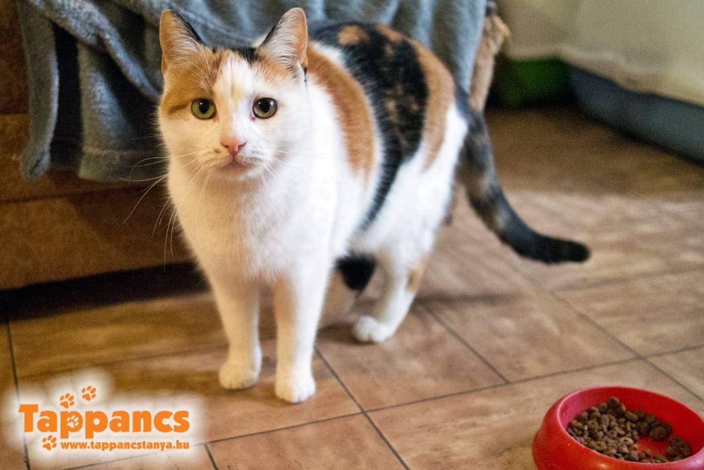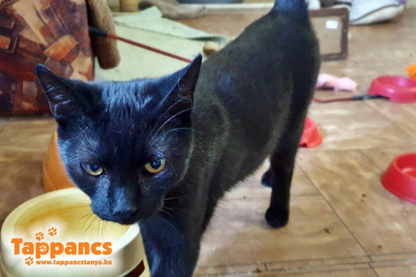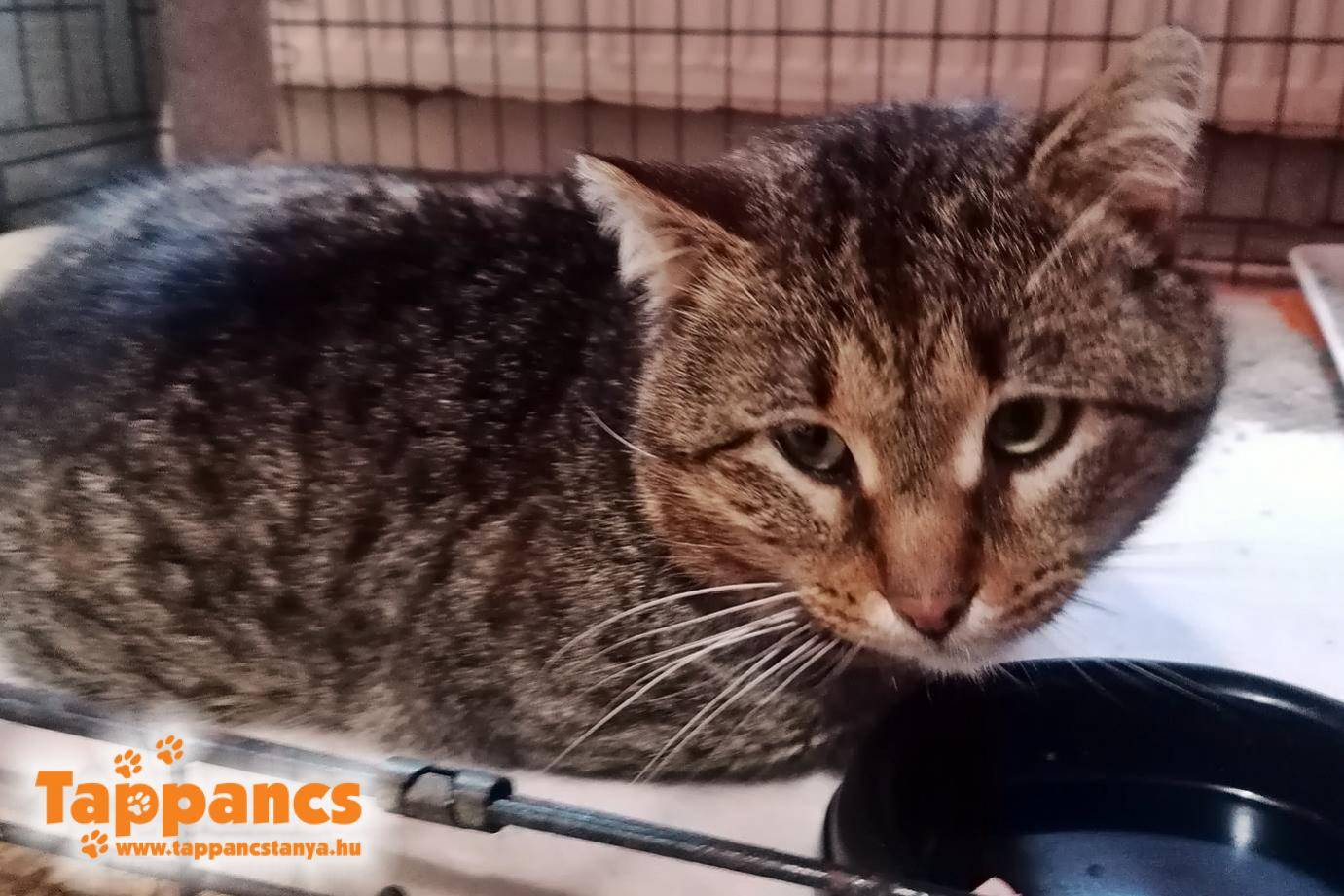 Állatszerető emberek hazafelé menet, a Rúzsai út szélén kuporogva egy macskára lettek figyelmesek. Az biztos, hogy valami ütés érte, mert a bal szeme bevérzett, alatta egy kis sérülés. Szőre alig, a teste nagy része szőrhiányos, alultáplált, de ez régebbről hozott állapot. Megsajnálták, felkarolták és hazavitték éjszakára. Mi másnap fogadtuk ezt a ramaty állapotban lévő, valaha szebb formában ékeskedő 6 év körüli kandúrt, kinek hálája leírhatatlan. Amellett, hogy megállás nélkül dorombol, izeg-mozog csakhogy hozzá érjen az emberhez, bármihez, bármivel, ha kell, kétlábra is áll hozzá. Azt is tűri, ha csepegtetünk a szemébe, nem baj, csináljuk, csak legyen köztünk kapcsolat. Elképesztő energiával szeret. Tőlünk a Dimitri nevet kapta ez a csupa-csupa pozitív energia