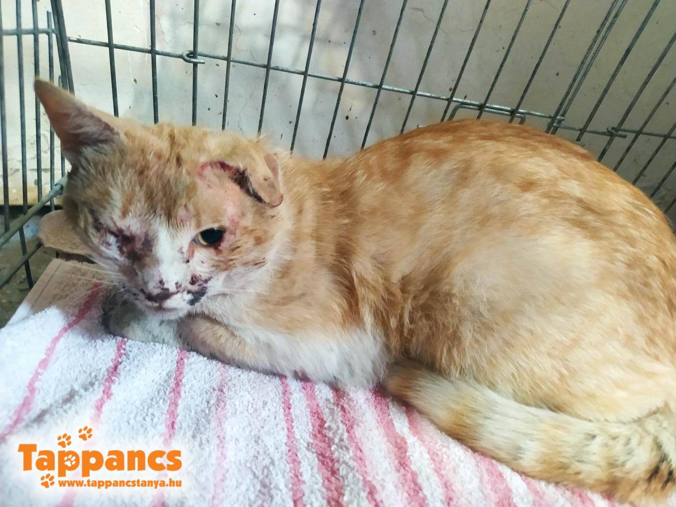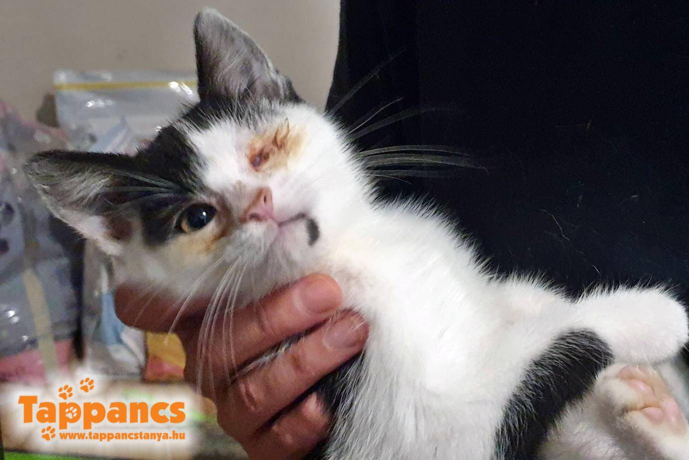 Új cicát fogadtunk, ki a beszállítók háza előtt agonizált pár órát. Kérésünkre elvitték Dr. Farkas Attilához, mert már zárás előtt voltunk, és épp sofőrünk sem volt aznap, a cicának pedig szüksége volt állatorvosra. A szokásos forgatókönyv, "boldog" kijárós/udvari cica, aki ivaros kandúr lévén rója az utcákat, mígnem találkozik egy autóval. Attól kezdve persze már senki cicája, honnan is tudhatná a "gazdi", hogy épp merre van a macskája. Napokig nem jön haza, jaaaj, de sajnálják... és lesz másik cica.... Valaki pedig veszi a fáradságot, már nem tudja nézni a magatehetetlen állatot, és felkarolja. Arca bal oldalát érte a sérülés úgy, hogya jobb szeme kiesett. Orrából, füléből dőlt a vér, sokkos volt. Az is kérdéses volt, megmarad-e. Doktor úrnak nem volt ideje műteni, visszatolta szemgolyóját, és pár öltéssel lezárta. Adott neki mindent, amivel enyhíthett fájdalmán és a sokktalanítja. Az éjszakát a családnál töltötte, amiért nem győzünk hálásak lenni, másnap reggel pedig fogadtuk őt. A kandúr tőlünk a Vincent nevet kapta egyedi külleme miatt. Bízunk benne, hogy túl van a nehezén, de még a következő pár napban mindenre fel kell készülnünk. Napi szinten injekciókat kell kapnia, amit jól visel. Pépes eledelt tud fogyasztani szép lassan, úgyhogy nagyon drukkoltunk neki! Erős fiúnak tűnik, hát a szeme meg végső esetben eltávolításra kerül, ez lesz a legkevesebb. Sokat pihen, ami nem is baj, regenerálódnia kell.