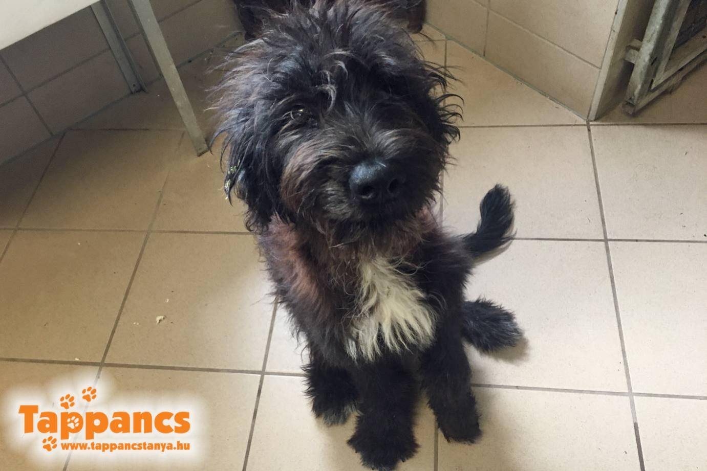Egy önkéntesünk chipleolvasásban segített, egy tacsi keveréket találtak a Plázánál az autók alatt. Chipje nem volt, éjszakára elhelyezték, reggel pedig érkezett a menhelyre. Pumesznek nevezték el.