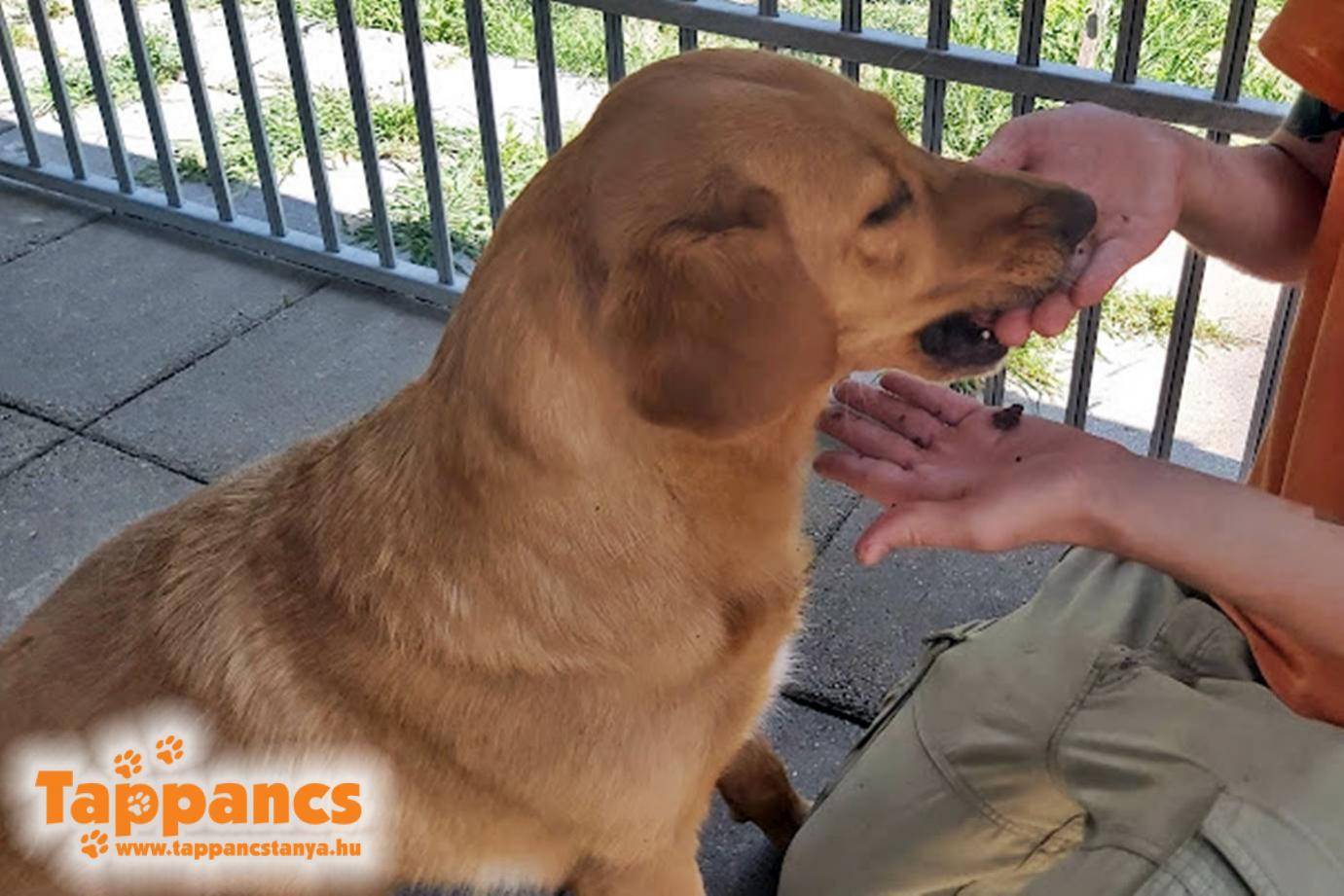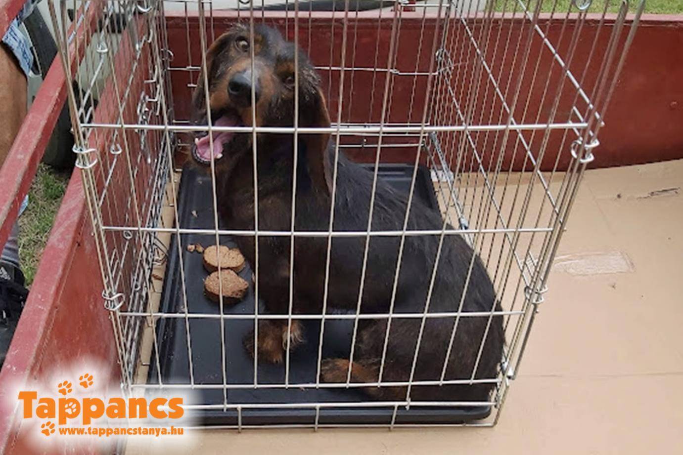Szombaton egy férfi még éppen itt ért minket munka után. Dorozsmán a körforgalomnál szedte össze a forgalom között tébláboló tacsit, és mivel félt, hogy elütik, hát idehozta. Chipje nem volt, ellenben eléggé be volt pánikolva. Az átadó udvarba kellett becsalogatnunk, mert attól féltünk, hogy valamitől megretten és világgá szalad. Tőlünk az Apacs nevet kapta.