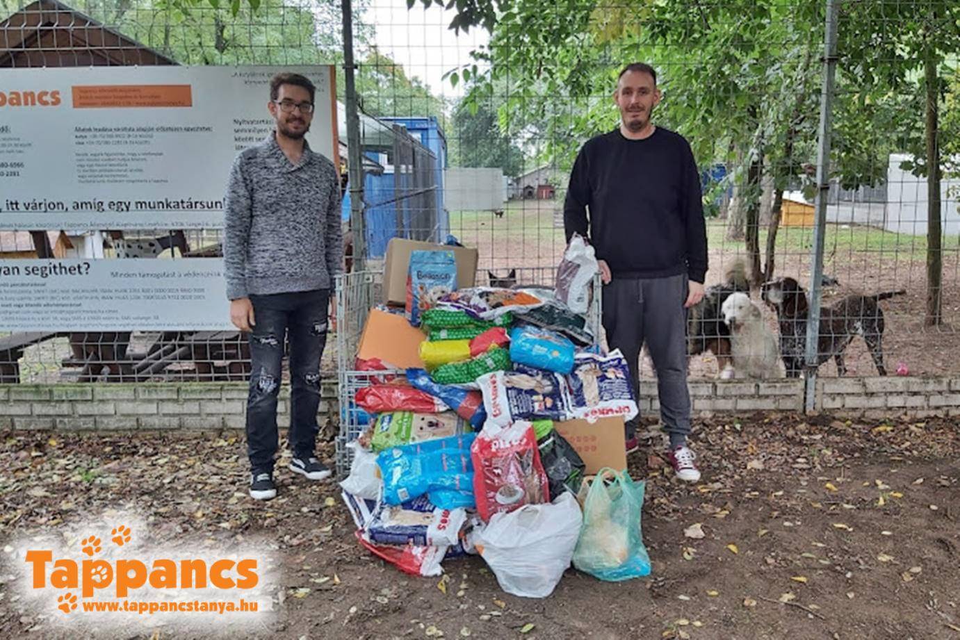 A mai napon a Hódmezővásárhelyi Állatvédők Egyesülete érkezett hozzánk egy szépen felpakolt autóval. Történt ugyanis, hogy az Állatok Világnapja alkalmából tartott gyűjtés egy picit meghaladta a tároló kapacitásukat. Azt a tápot, amit ők nem tudnak eltárolni, felhasználni, felajánlották nekünk, hiszen mi jelenleg majdnem kettőszáz kutyáról gondoskodunk. Nekik egyébként a fő profiljuk a cicamentés, de azért vannak náluk kutyusok is, csak csekélyebb számban.