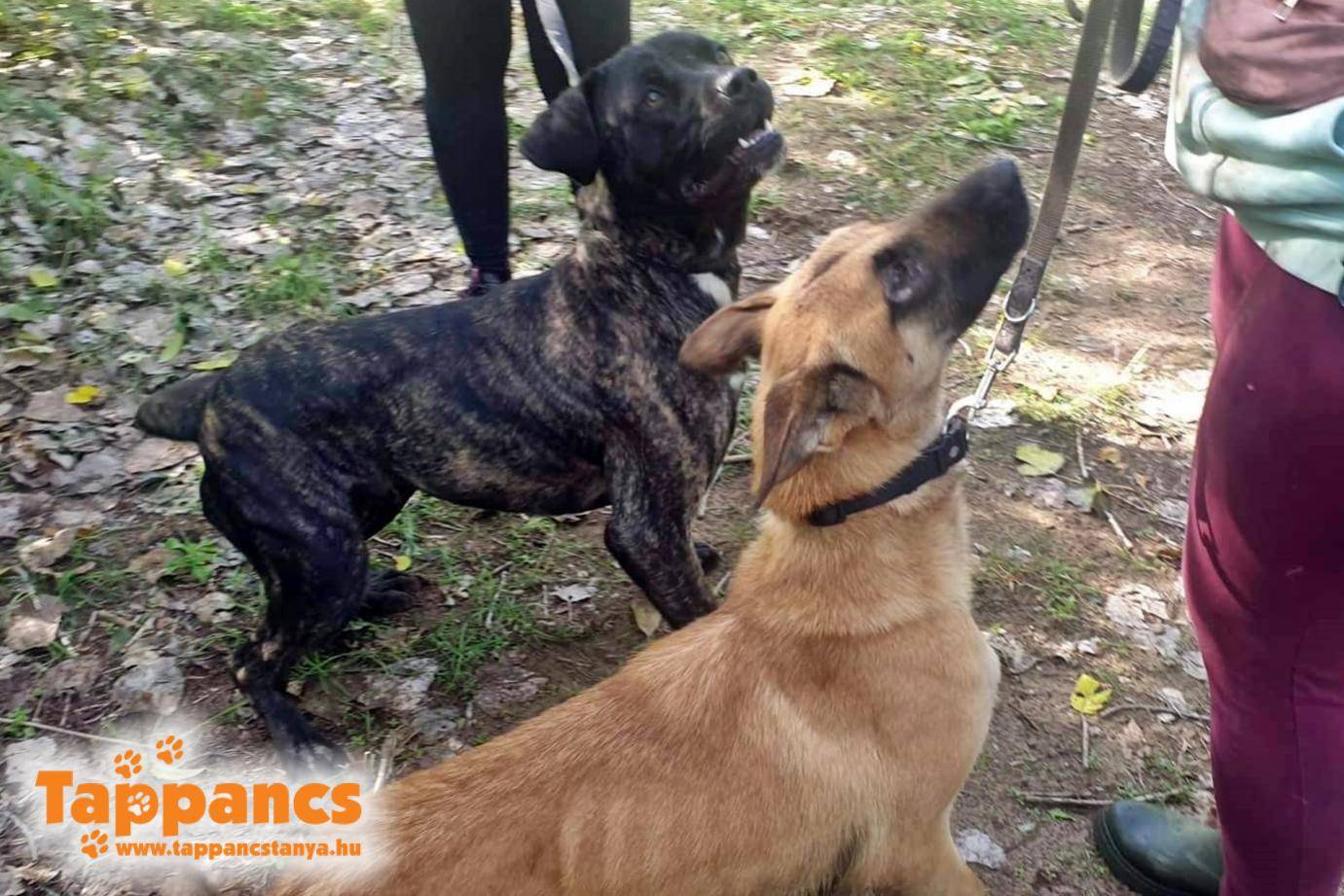 Màr jó néhány napja azon munkálkodunk, hogy Mollit és Fifit "összeházasítsuk". Természetesen ahogy etikusan, két ivartalan kutya esetében értendő. Molli ugyanis eléggé nehezen kommunikál a kutyákkal, Fifi pedig nagyon pörgős, így nem lehet csak úgy hirtelen összerakni őket. Ráadásul Molli a volt gazda elmondása szerint a két méteres kerítést is simán átmássza, így leendő kenneljükben is fontos mindenre felkészülni.