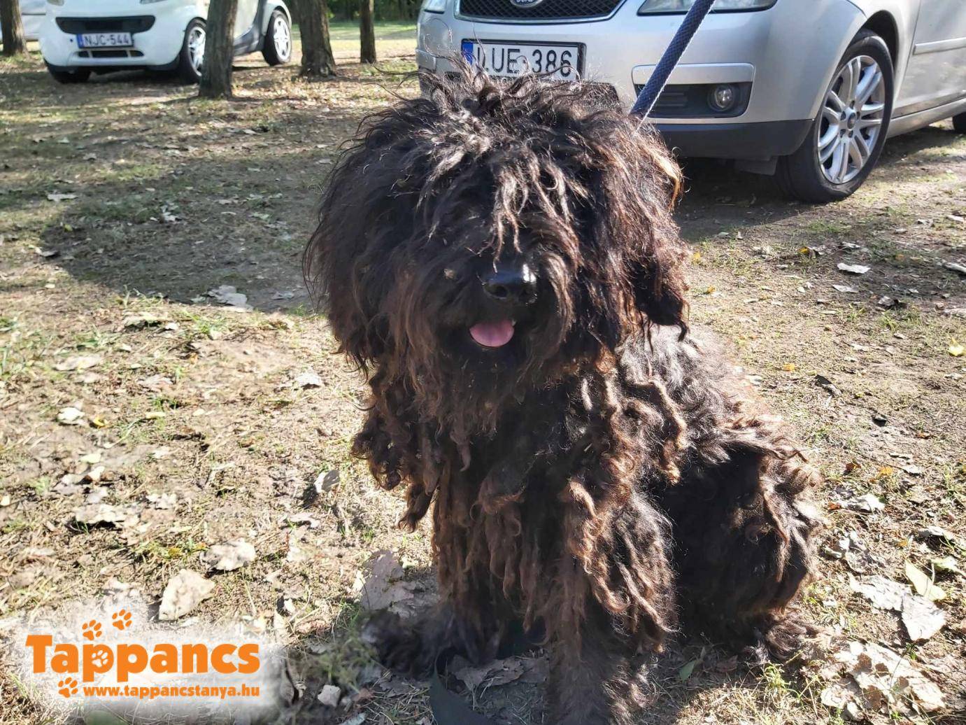 Mira érkezése után nem sokkal egy nagyon rossz állapotú, puli jellegű kutyáért kellett kimennünk. Őt már korábban jelentették, de eddig nem sikerült megfogni. A csontsovány, iszonyúan elhanyagolt pulinak sem volt mikrochipje. Ellenben elhanyagolt loncsos szőre igen, ami ráadásul tele volt királydinnyével. Szerencsére őt nem szúrta a szőrpáncél miatt, de mi alig tudtunk hozzáérni
