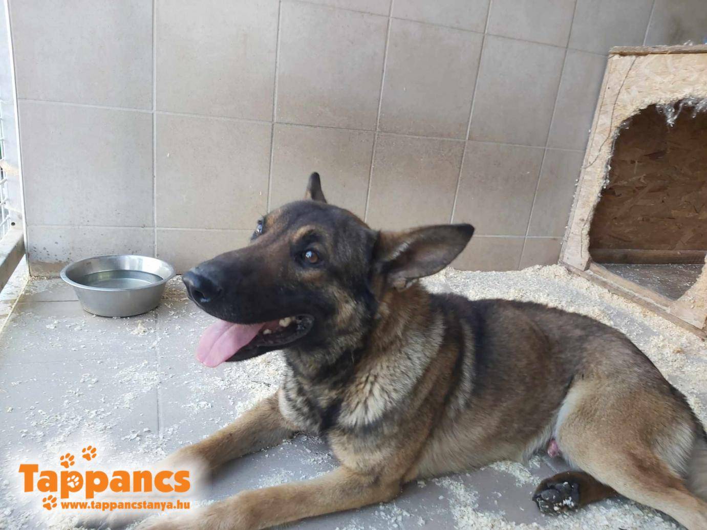 Hatalmas Bagiránk már csak a termete miatt is, a nagyudvarban kapott helyet. Ha ez még önmagában nem volna elég, a karanténban eltöltött idő alatt úgy vettük észre, hogy annak ellenére, hogy nem idős kutya, máris nehezebben jár. Ez sajnos a méretének lehet a következménye. A többiektől nincs megijedve, sőt, valószínűleg tisztában van azzal, hogy ilyen mérettel aligha merne valaki belekötni.