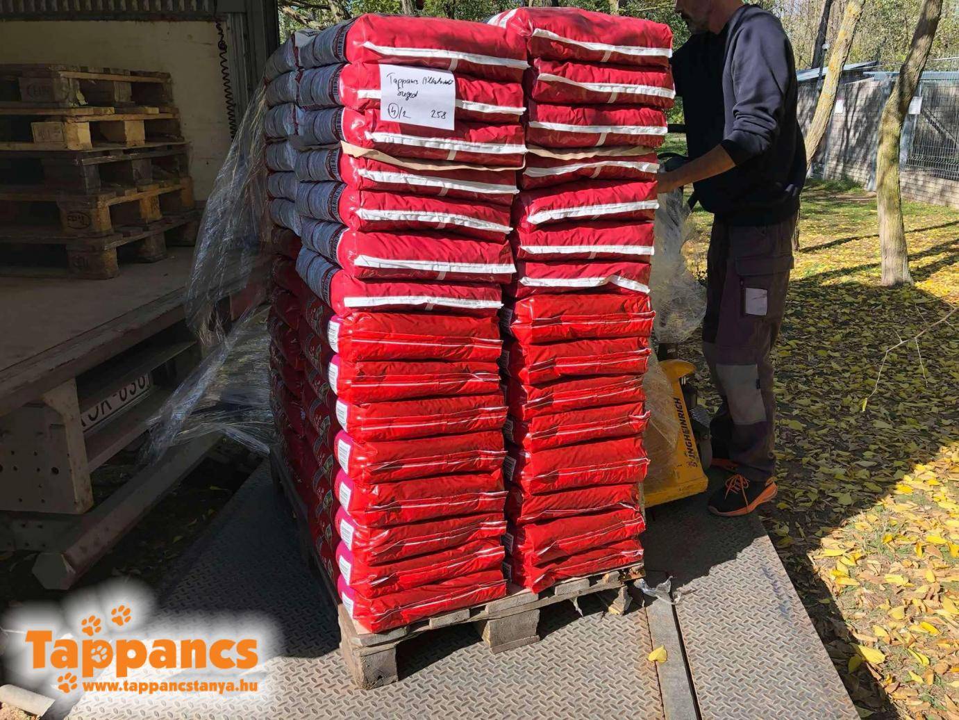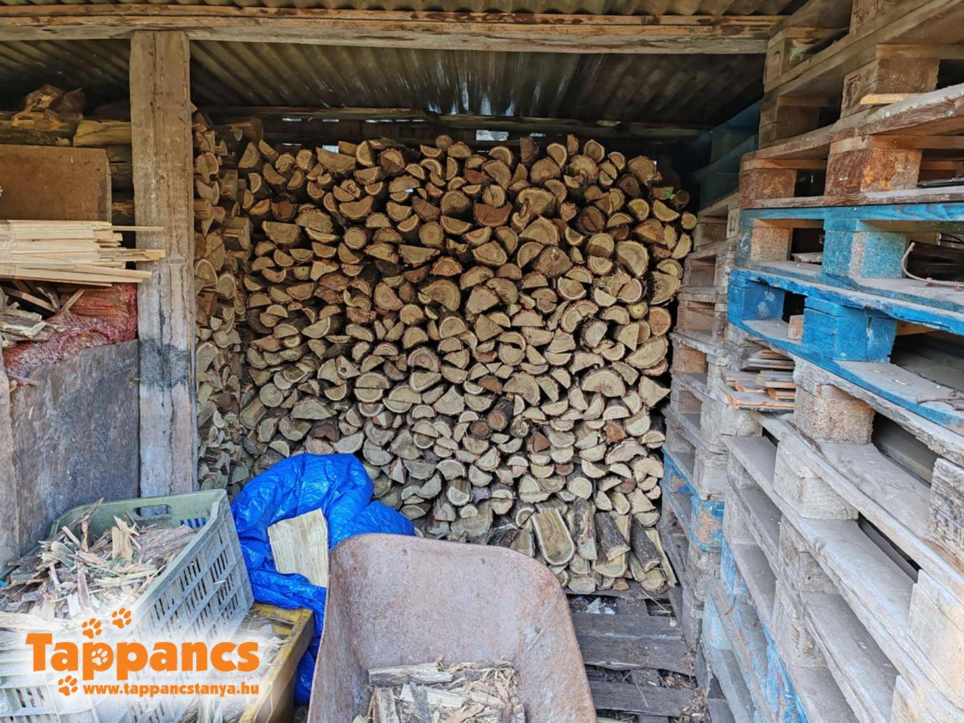 Ma a pakolásé volt a főszerep, ugyanis megérkezett a téli tüzelőnk egyik fele, amit szintén be kell pakolni, hogy ne ázzon. Sajnos a tüzelő nem adományba érkezett, de sajnos nincs mit tenni, az épületeket, melegedőket, betegszobákat, idős kutyák helyét fűteni kell.