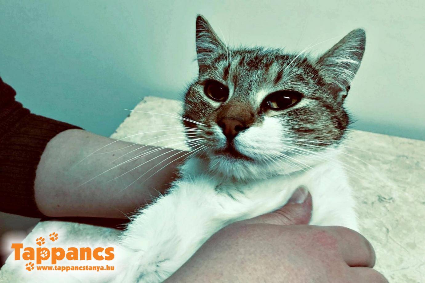 Egy hétig "vadásztuk", mert amikor tudtuk volna műtétre vinni, sosem jött enni. Amikor pedig jött (és az etetője, Ágnes meg tudta fogni) nem volt időpontunk az orvoshoz. De nekünk olyan szuper dokijaink vannak, hogy kivételesen még este fél 8-kor is vihettük őt műtétre. A műtétje után pedig a garázsunk vendégszeretetét élvezte a lábadozási idő alatt.
