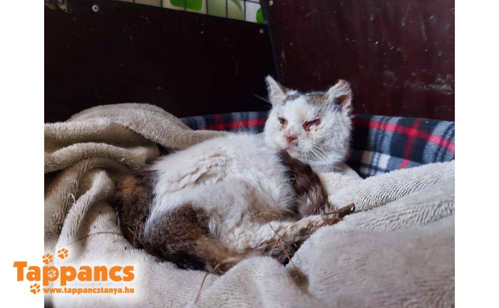 Egy idős, nagyon beteg cicát fogadtunk, kinek Titusz lett a neve. Öreghegyről került be, a bokor alatt kuksolt. A fotó nem adja vissza állapotát, de teljesen csont és bőr, erőtlen. Kapott infúziót, vitaminokat, erősítőt, és ment rá az extra melegítés. Bizakodunk, hogy ezek hatására, ahogy átmelegszik a kis teste új erőre kap! Sajnos egyelőre az állapota kritikus..