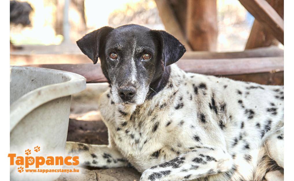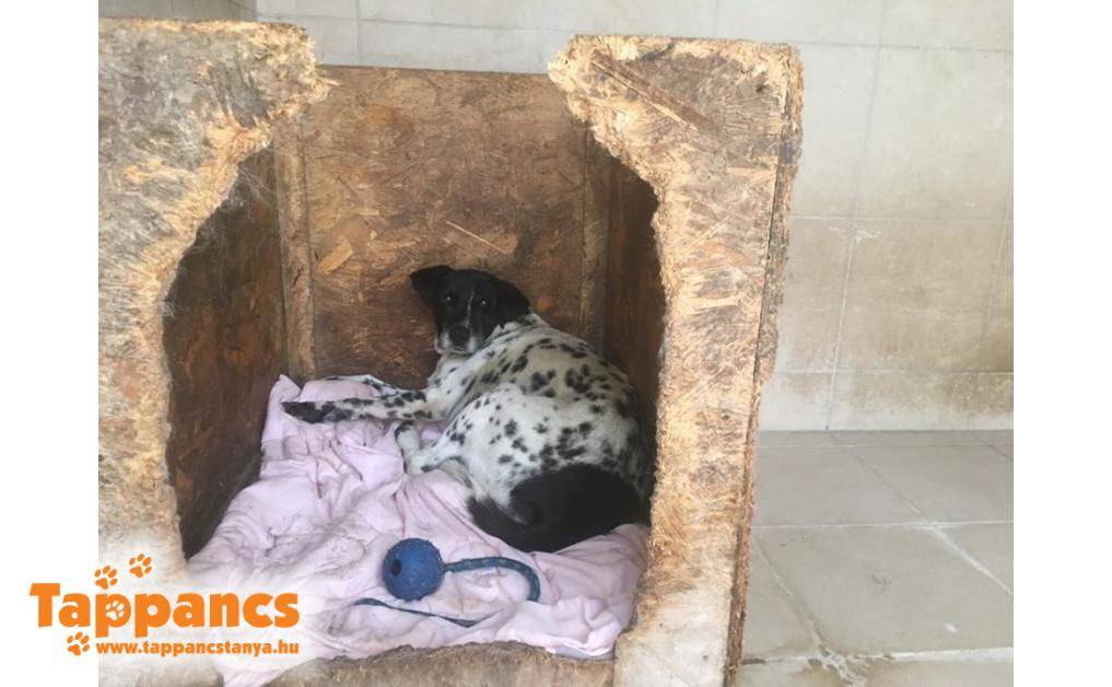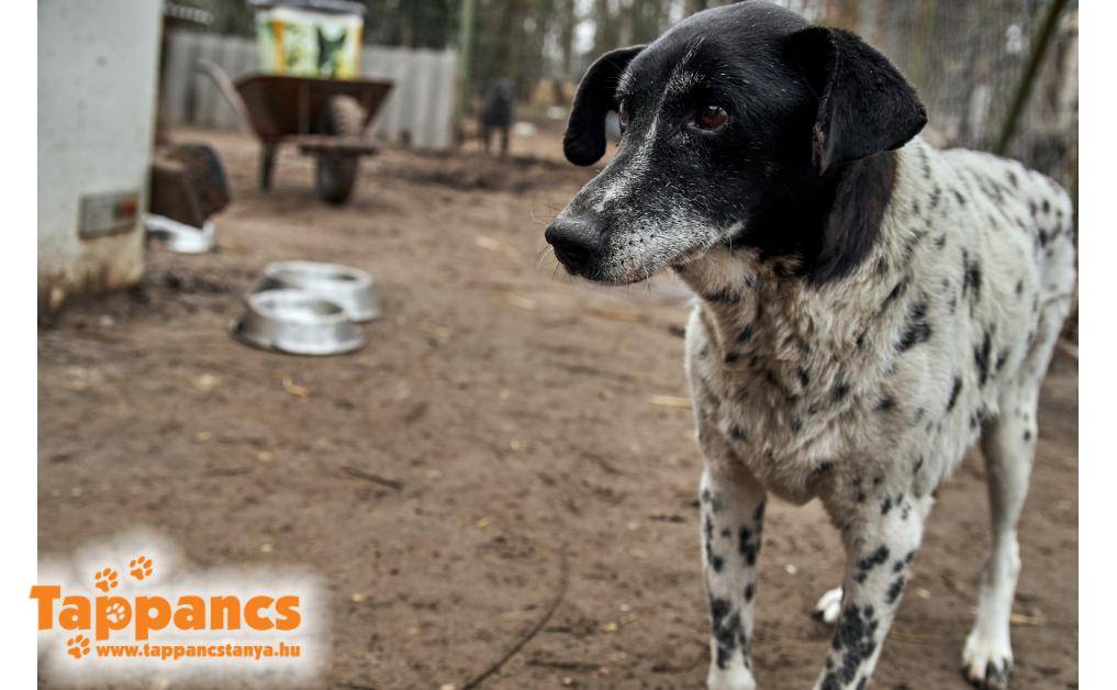 A félénk kutyust az egyik menhelyi dolgozó találta egyik reggel a munkába menet, közel a tanyához. Lassan kezdi biztonságban érezni magát, de még mindig nagyon visszafogott.