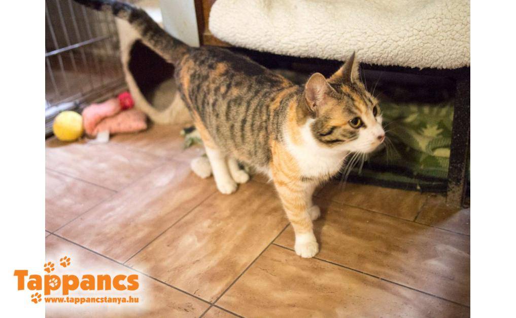 Egy férfi telefonált a kapuból, hogy találtak egy kiscicát a benzinkúton, mennek vissza külföldre, és nem tudnak vele mit csinálni. Igazából nem voltunk felkészülve egy cica fogadására, főleg nem már zárás előtt fél órával, de még a telefonban elhangzott, hogy napok óta ott volt a cica, és teljesen le volt fogyva. Egy luxusautóból kiszállt a férfi felesége, mellényébe rejtve a cicával, akiről nyilván elhittük a hallottakat. Majd előkerült egy kis alomtálca, egy kis játék, kis kajamaradék. Mire a cicával kontaktoltunk, már ott tartottunk, hogy van rajta bolhanyakörv, két napja náluk van, és akartak neki gazdit keresni, de nem sikerült, most viszont mennek vissza, és hát nem vihetik magukkal, mert hát sokat dolgozik a férj, de amúgy vinné. Meg érdekes módon a két nap alatt a cica teljesen jól összekapta magát, éhezésnek nyoma sincs. Egy köszi, csá!- val le is tudtuk... Igazából nem tudjuk meg soha Cifra előéletét, mert minél több infó volt, annál kacifántosabb lett a sztori, és annyira ferdült minden irányba. Ezt maximálisan nehezen viselem, hisz nagyon sokan fél éve is várják, hogy bekerülhessen a bejelentett cica...Velük szemben egyáltalán nem fair. De erről Cifra, a kb. fél éves szintén trikolór leányzó nem tehet.