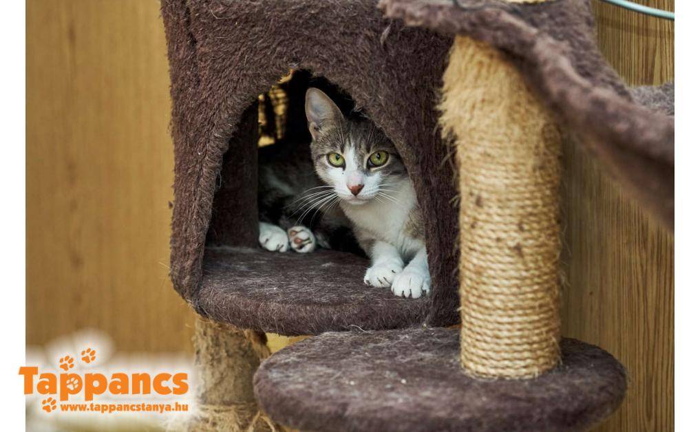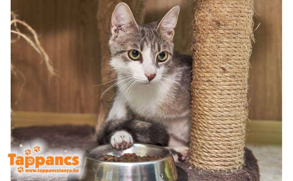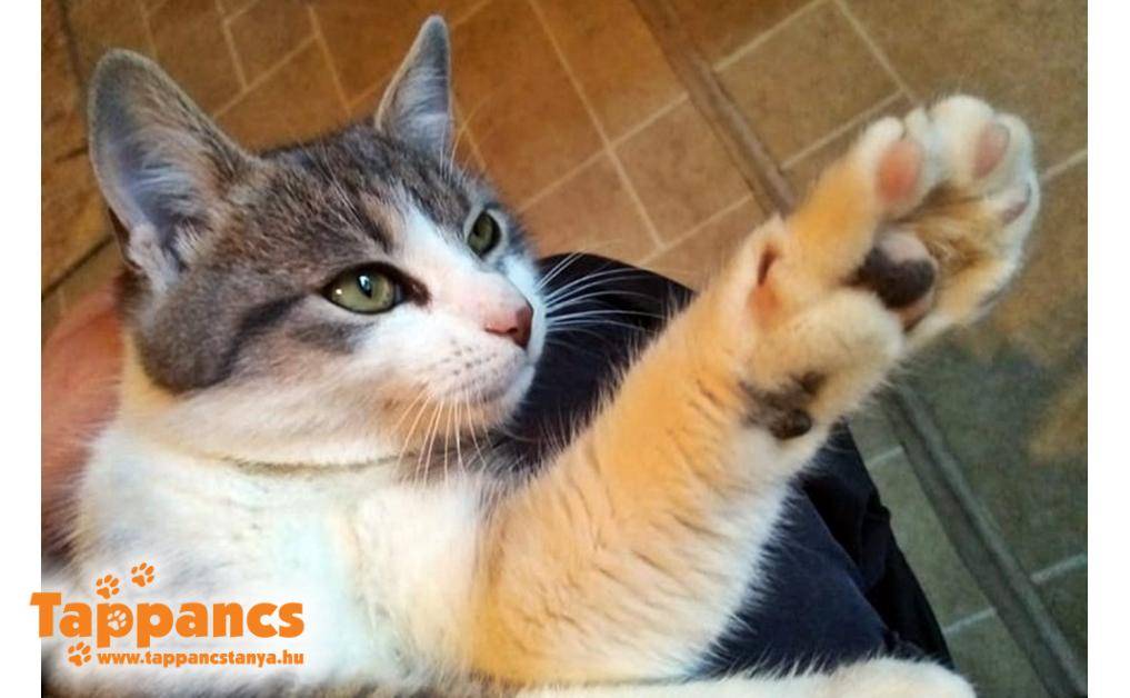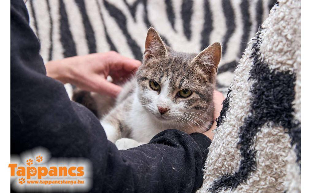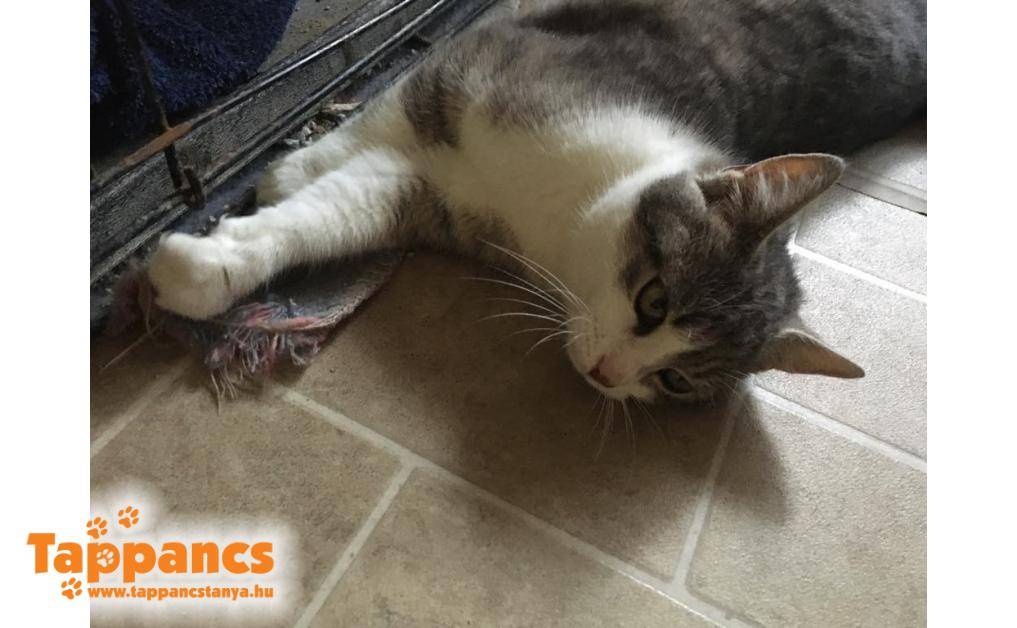 Gombócot és testvéreit Tápén, egy dobozban találták a kuka mellett még a nyáron. Azóta tesói szerető családba kerültek, Gombóc pedig szépen kerekedett. Valami eszméletlenül bújós, magát elvetős, enyelgős kis szeretetbomba, aki nevéhez hűen formás, imád enni. Konkrétan üvölt a kajáért, de ezt leszámítva nyugodt, bújós fiatal cicalány.