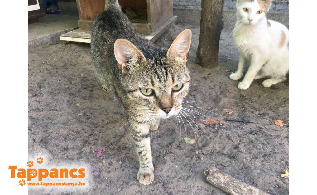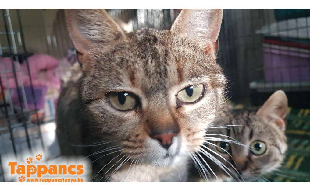 Az anya cica hónapok óta egy néni udvarában talált menedéket. Saját cicája mellett többen is odajárnak falatozni, de mindegyiküknek van gazdija. Ennek a fiatal cirmos leányzónak viszont úgy tűnt nincs, mert a napjai java részét ott töltötte, berendezkedett. Majd egy nap egy kis cirmos árnyéka is lett, aki folyton kísérgette mindenfelé és a nőstény cica nagy gondossággal tisztogatta, szeretgette. Minden bizonnyal a kölyke, amúgy sem tudná letagadni, hisz ugyanúgy néz ki mint az anyja. Várólistáról kerültek be, jelenleg 5 hónap körül van a kiskandúr, aki kicsit félős és továbbra is állandóan az anyja szoknyája alatt van. Anyja nagyon kedves, közvetlen cica, ő a Hidra nevet kapta, míg kölykét Humusznak neveztük el.