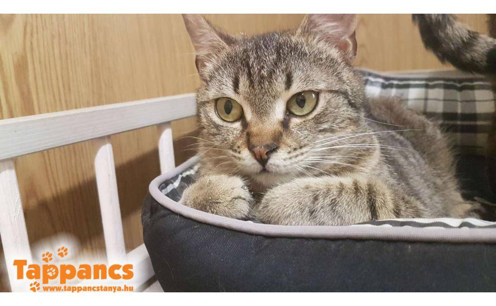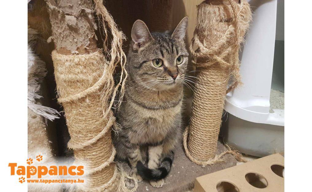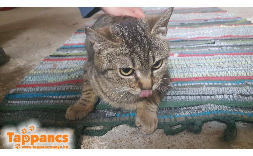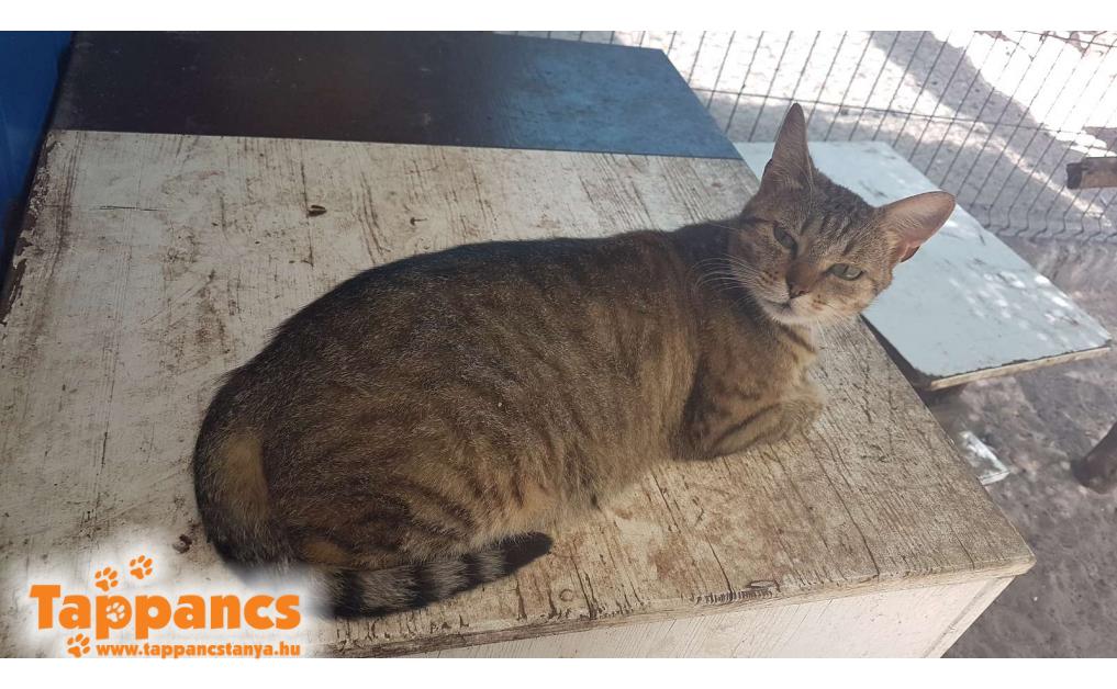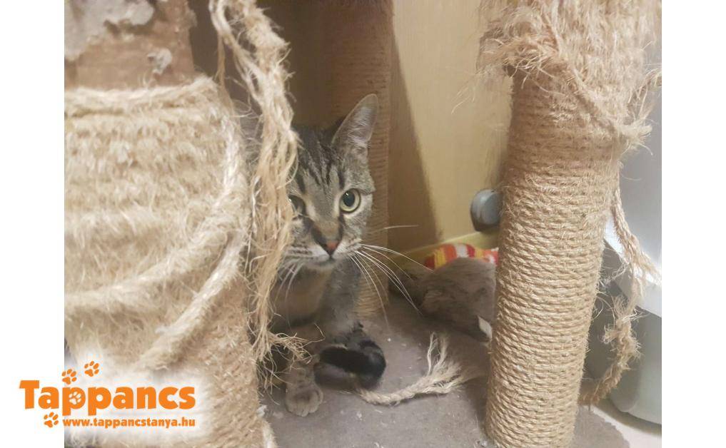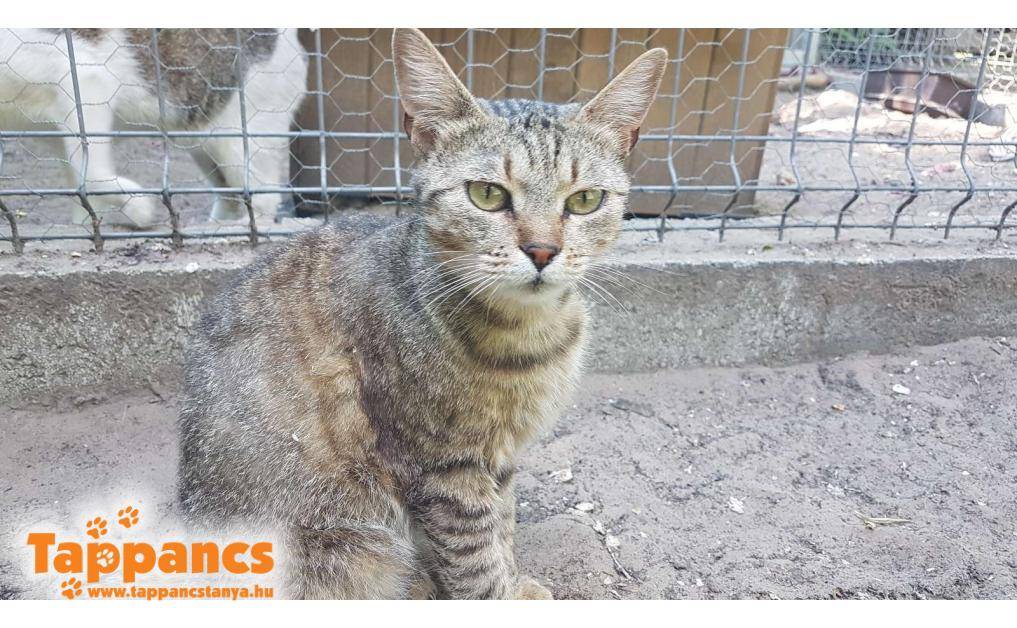 Az anya cica hónapok óta egy néni udvarában talált menedéket. Saját cicája mellett többen is odajárnak falatozni, de mindegyiküknek van gazdija. Ennek a fiatal cirmos leányzónak viszont úgy tűnt nincs, mert a napjai java részét ott töltötte, berendezkedett. Majd egy nap egy kis cirmos árnyéka is lett, aki folyton kísérgette mindenfelé és a nőstény cica nagy gondossággal tisztogatta, szeretgette. Minden bizonnyal a kölyke, amúgy sem tudná letagadni, hisz ugyanúgy néz ki mint az anyja. Várólistáról kerültek be, jelenleg 5 hónap körül van a kiskandúr, aki kicsit félős és továbbra is állandóan az anyja szoknyája alatt van. Anyja nagyon kedves, közvetlen cica, ő a Hidra nevet kapta, míg kölykét Humusznak neveztük el. Szerencsére a kiskrapek annyira nem volt megriadva, hogy ne essen neki az ételnek, holott a néni elmondása szerint bőven bereggelizett. Ennek nyoma sincs, és azóta is úgy fal a pici raptor, ha anyja nem elég ügyes, még az ő tálkájába is beledézsmál.