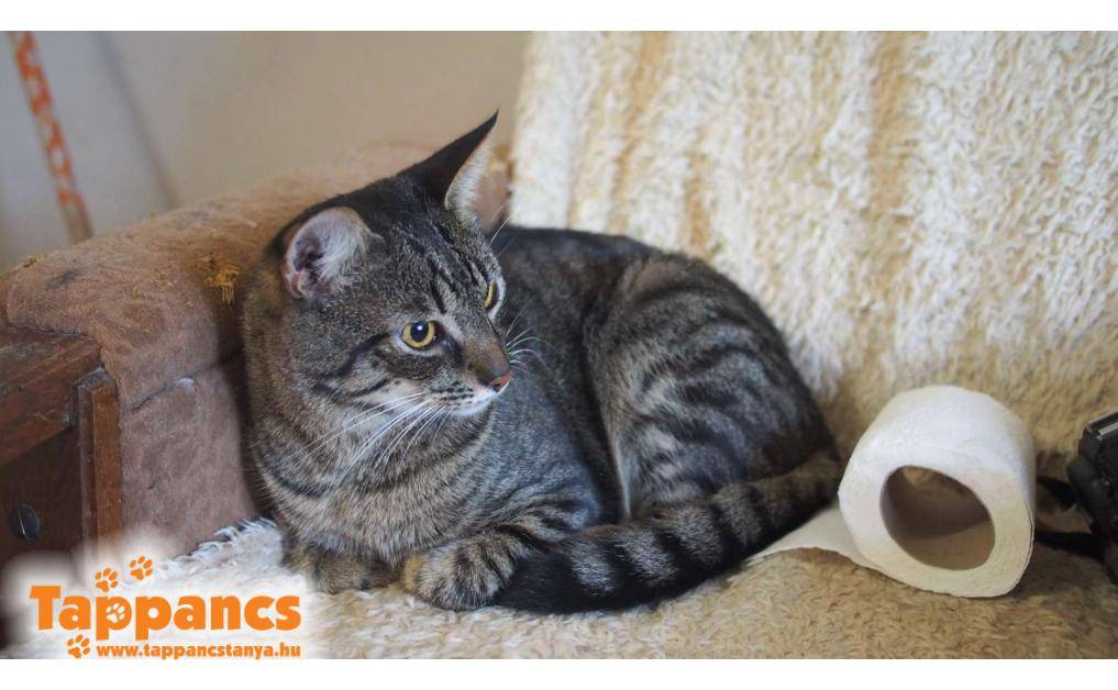 Karcsika várólistáról került be. Őt korábban egy autóból rakták ki. Futott az autó után, aztán egy parkolóban húzta meg magát, míg egy fiatal pár meg nem szánta, és haza nem vitte. Próbáltak neki gazdit keresni, ám ahogy telt az idő, egyre inkább megszerették. Ivartalanítva lett, oltási programja is megkezdődött, és negatív gyorsteszttel is büszkélkedhet. Viszont hiába minden szép és jó, ami körbevette ezt az imádnivaló, gyönyörű fiatal kandúrt, elkezdett mindent megjelölni. Ivartalanítás után szokott rá, és egész odáig fajult a dolog, hogy nem csak jelölt, hanem egy laza tévézés közben is képes volt a kanapéra vizelni. Nyilván ez hosszútávon ezzel nem lehet együttélni, bármennyire is megpróbáltak mindent, orvosnál is jártak a problémával, de semmit sem találtak. Kivárták a várólistát, és most itt van ez a csupaszív cicafiú, aki imádja az embereket, emellett érdeklődő, zsivány és mindenlébenkanál, egy hatalmas megoldandó feladattal.