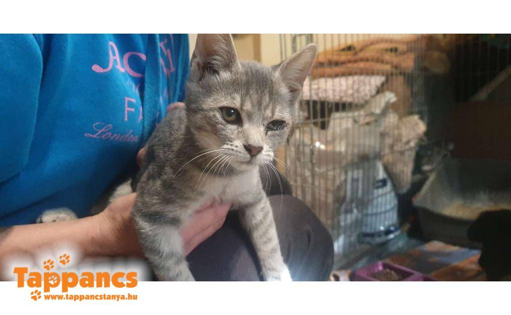 Őt a sándorfalvi strandról szedték össze. A cica náthás, szerencsére nem haldoklik, mint ahogy gondolták. Amint letakarítottunk arcáról a rászáradt csipát és mindenféle váladékot, egész csinos pofika került a felszínre. Két hónap körüli cicalány, ki a Nikka nevet kapta. Megkezdtük a gyógyszerezését, erősítését. Az étvágya jó, ami sokban megkönnyíti a gyógyulását majd.