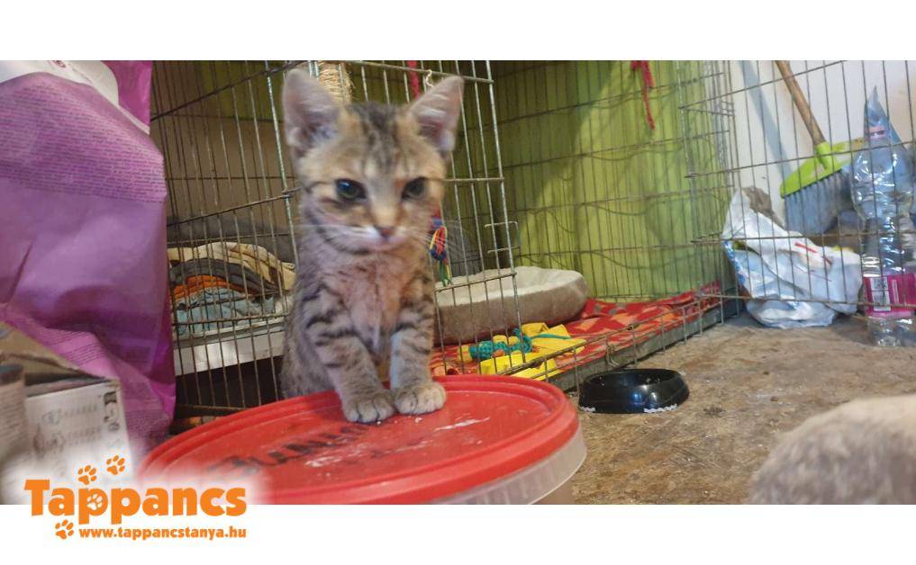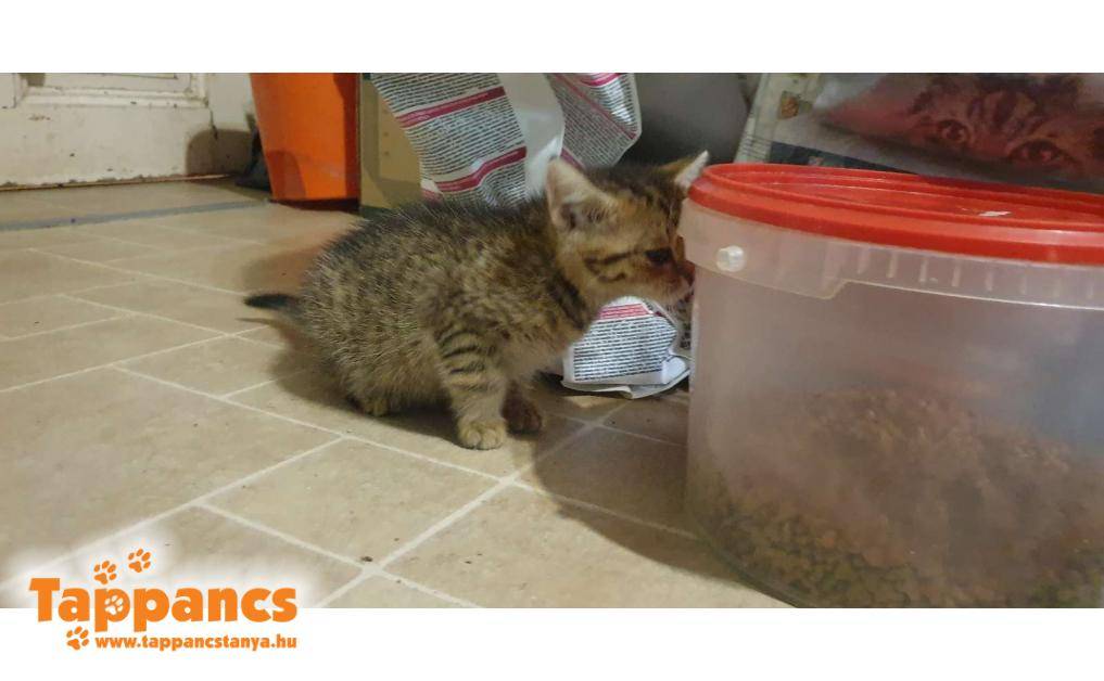 Egy szegedi autómosóban találtak egy picike cicát. Jelezték, hogy rossz állapotban van. Ilyenkor felkészülünk mindenre, mert bármi fogadhat minket. Szerencsére ki tudták hozni, így azonnal fogadtuk őt. Sok embernél a becsipásodott szem is kritikus állapotot jelent, de van amikor jól látják a helyzetet, és valóban annyira drámai a helyzet, ahogy megítélik. A maréknyi cirmos olyan 5 hetes forma. Szerencsére a csipából kimosdatva még ott voltak a szemecskéi, érzékelt is. Konkrétan egyelőre tényleg csak a szemével kommunikált, mert semmi, de semmi ereje sem volt. Néha egy picit felemelte a fejét, de vissza is zuhant. Az, hogy hemzsegtek benne a bolhák, már nem is volt meglepő.