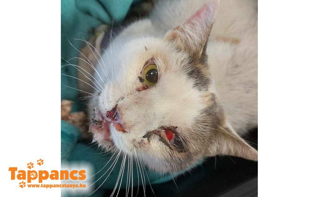 Egy cicát jelentettek Móra városrészről, hogy véres arccal gubbaszt egy ház előtti bokros tövében. Mivel mi sofőr hiányában nem tudtunk elmenni érte, egyik ismerősömet kértem meg, hogy szaladjon el érte, amiért nagyon hálás vagyok!!! A cicát beszállította a Vezér Állatorvosi központba, ahol bent is tartották. Baleset érte szerencsétlent, állkapcsa eltörött két helyen, ezért folyt arca minden nyílásából a vér. Lehet, hogy az egyik szeme világát is elveszíti, de ez talán a legkevesebb ebben a helyzetben. A műtétig bent tartották, közben előkerült a gazdija is, aki ettől kezdve átvette a stafétát, és alig várta, hogy újra láthassa cicáját. Mi Sasszénak neveztük el a cicát, aki egyszer ment ki, és ilyen pórul járt. Gazdija sem értette, hogy történt, de az biztos, hogy mindent megtesz, hogy mihamarabb felépüljön és soha többé még a lakást sem hagyhatja el. Szerető, ismerős környezetben biztos gyorsabban fog gyógyulni, mihamarabbi teljes felépülést kívánunk neki.