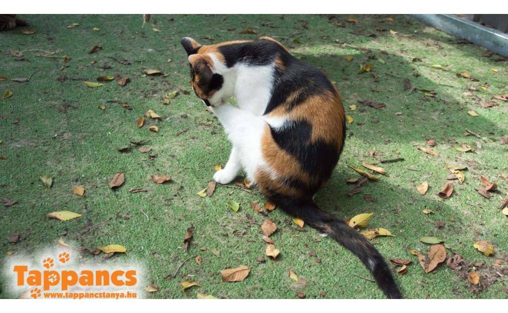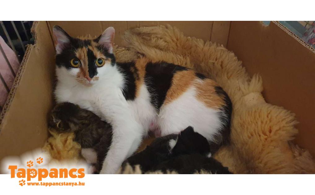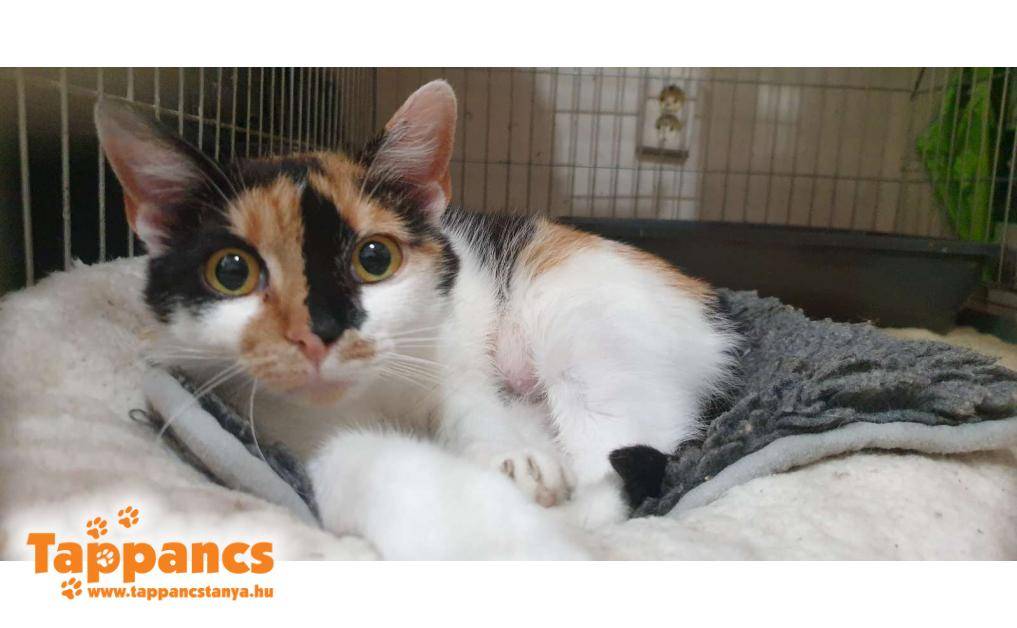 Stefit és családját még tavaly, a hideg beállta előtt rakta ki valaki egy közös udvarba, aminek az egyik épületében egy kifőzde van. Egyik testvérük hamar gazdira talált, így ketten vészelték át ott a telet. Egy idős házaspár szánta meg őket ilyenkor, ők is kérték tőlünk segítséget. A cicák szerencsére kezesek, a kandúrt az egyik szakácsnő haza vitte, így csak ez a bűbájos lányka került be, aki a Stefi nevet kapta. Stefire tényleg az a legjobb szó, hogy ő egy bűbáj, olyan kis finom lelkű, kedves teremtés, ami a légynek sem akar ártani. Sőt, 4 árván maradt pici babát is segít a gondozóknak felnevelni.