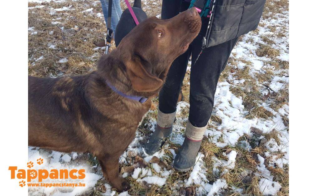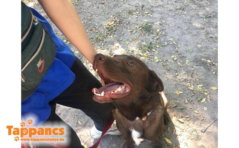 Gazdája lebetegedett, ezért került a menhelyre. Berci egyenlőre elég megfontolt, óvatosa a sok új emberrel.