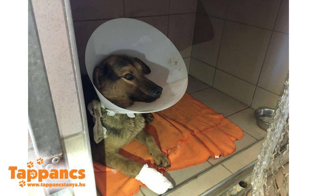 Menyusnak a lábán egy sérülés volt, amit varrni már nem lehetett, így szegényke pályafutását gondozásunkban szinte egyből a betegszobán kezdte.