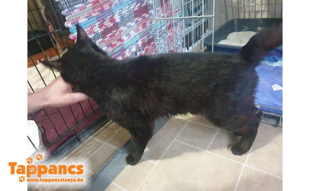 Zalán utcában az állatorvosunk talált egy balesetes cicát. Ellátva, ill. kicsit bebódítva érkezett meg a szép fekete kandúr. Fiatal, természetesen ivaros. A készített röntgen alapján a hátsó két csigolyája távolodott el egymástól. Jobb hátsó lábfején van egy seb, farka érzéketlen, nyilván a hátsó lábait amúgy sem használja. Kibéleltünk egy ketrecet, bepelenkáztuk az alját, mert kíváncsiak voltunk sikerül-e pisilnie. Az állatorvos adott neki mindenfélét, infúziót, fájdalomcsillapítót, antibiotikumot, amit nekünk is folytatnunk kell.
