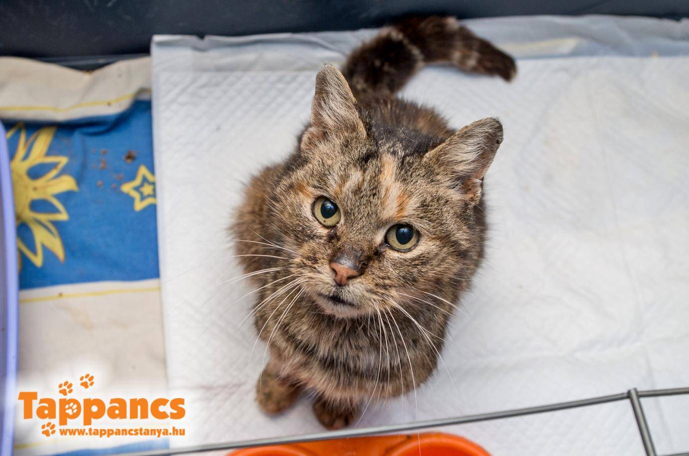 Balesetes cicát is fogadtunk a minap. Ő a reptérre vezető úton, a buszmegálló mellett feküdt kitudja mióta, mert már ki volt száradva. Egy Facebook poszt alapján indultak keresésére és amint megtalálták, el is vitték az ügyeletes állatorvoshoz, ahol infúziót és fájdalomcsillapítót kapott. Az angyalok, kik szárnyuk alá vették megtettek tőlük minden telhetőt a maga alá vizelő, hátsó lábait nem használó cicáért, viszont előjött a macskaallergia, ami miatt nem tudtak tovább gondoskodni róla. Röntgen is készült róla, medence törése van az öreglánynak, ki a Rep Teri nevet kapta. A beszállítója csomagot adományozott mellé, ami több szükséges dolgot is tartalmazott Terike számára (közte pelust is). Köszönjük szépen!