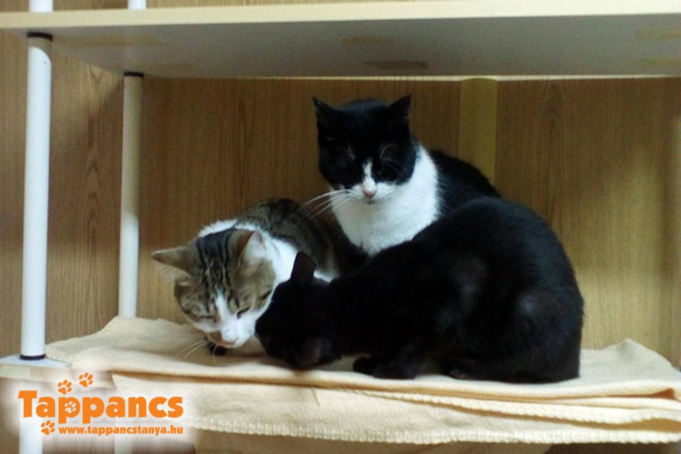 Ahogy Táncos átesett az első komolyabb simogatáson, azóta elkezdte bontogatni szárnyait. Sokkal inkább érdeklődő és közeledik, pontosan nem is tudom leírni mit tapasztalunk vele, de más, nyitottabb. Nah, azért nyílt terepen nem alél el ha megsimítjuk, de az őrült menekvés nem szerepel a repertoárban, inkább csak arrébb lép egyet. Icuval közösen láttuk el őket, így dupla figyelmet tudtunk szentelni nekik. Ezen felbuzdulva még Cakkos is beadta a derekát. Mint egy cápa, úgy köröz az ember körül, mert a szíve mélyén ő is igényli és akarja a törődést. Ha rászánja magát, megáll és akkor meg lehet vakarászni pofiját és puha bundácskáját, most több esetben is élt a lehetőséggel. Ilyenkor olyan büszkék vagyunk rájuk, nem győzzük csodálni hihetetlen bátorságukat és szinte gügyögve áradozunk szépségükről.