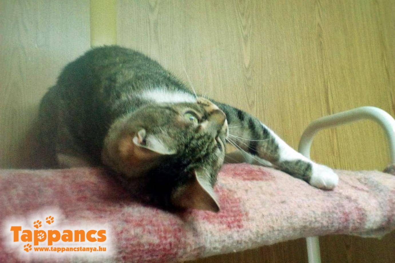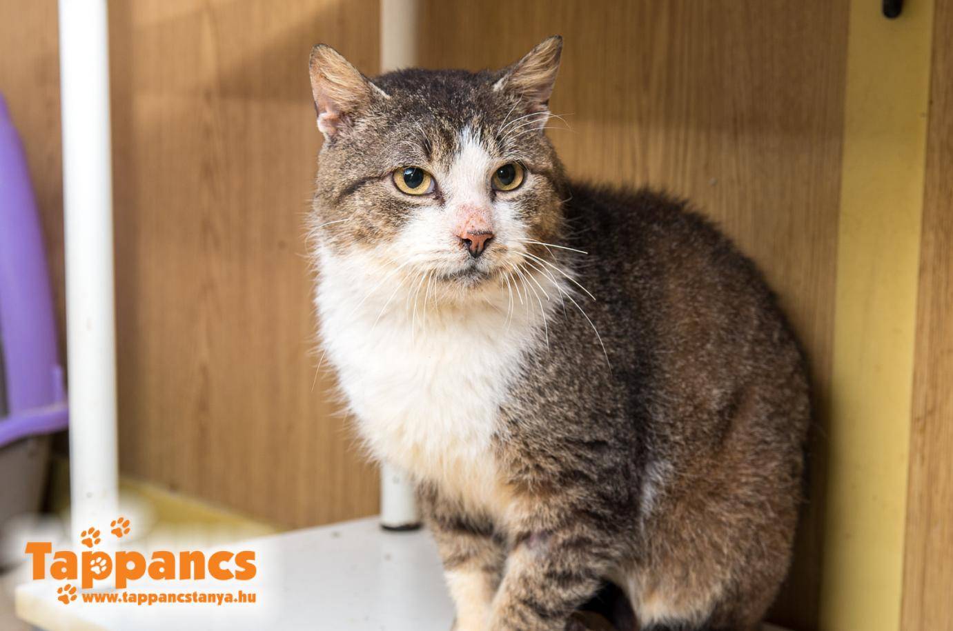 Majd egy férfi érkezett ki, kétségbeesve kért segítséget. Édesanyja Szegedről három hete eltűnt és volt egy cicája, akiket ők pár naponta tudnak csak ellátni, mivel Érden laknak. Bízunk benne, hogy az édesanyja épen és egészségesen megkerül, de mi csak abban tudtunk segíteni, hogy az ingázás terhét levesszük a vállukról és befogadtuk a cicát. Minden kedvenc holmiját ideadták vele és igaz, hogy nem régen veszítettük el Bibit, aki korban, színben és elmúlt éveit tekintve ugyanolyan körülmények körül került hozzánk, de bizakodunk, hogy Nyafi úr erősebb lesz és jól fogja magát érezni nálunk. Egyelőre annyira meg volt riadva ez a bájos, 10 éves, ivartalan kandúr, hogy zilált és zavarodott volt, de nagyon jó természetű cica, reméljük gyorsan elfogad minket. Mi mindig ott leszünk, hogy ebben segítsük őt.