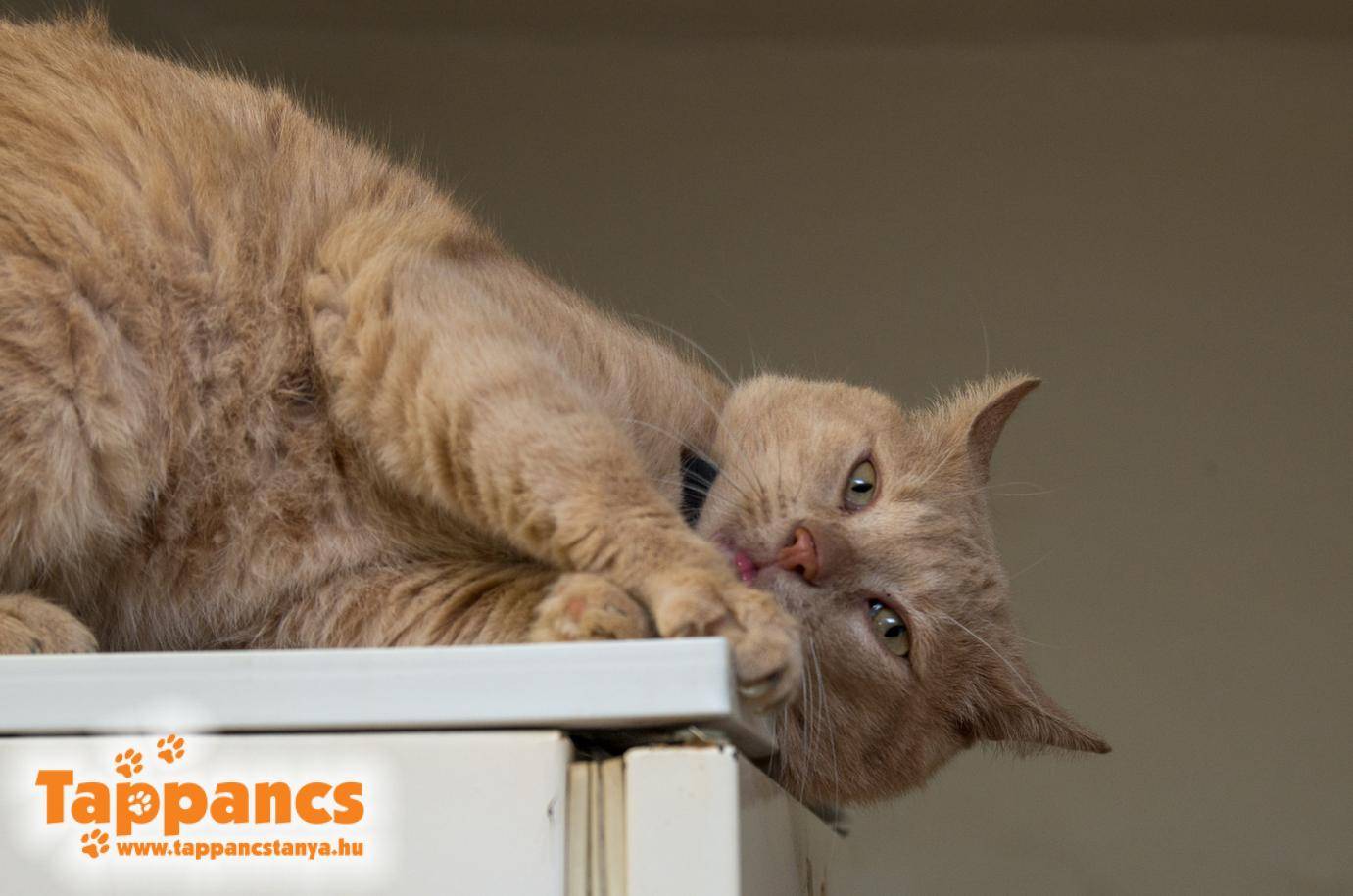 Öreglányunk, Terike megint aktívan elkezdte kinyalni a hátát. Már gyanakodtunk ekcémára, allergiára, kapott szteroidot (ami némi javulást eredményezett). Van hogy jobb, elkezd gyógyulni a kis bőre és újra kezdi. Erre ügyelünk és ha beszáradt, azonnal bekenjük kék lukács krémmel, nehogy a viszketés vagy bármi ingerelje. Pár nap után pedig mintha mi sem történt volna, ismét nekifog. Doktor úr szerint bármi belső dolog is lehet, megint kapott szurit a drágaság, aki mindig meglep minket új mutatványaival. Most épp a polcon, Fintor fonott kosarát birtokolja, és őszintén nem is értjük hogy tud oda felmenni. Étvágya kiváló, szerencsére és ezt mindig azért emelem ki, mert amíg esznek, addig nyugodtak vagyunk, hogy olyan nagy gond csak nem lehet.
