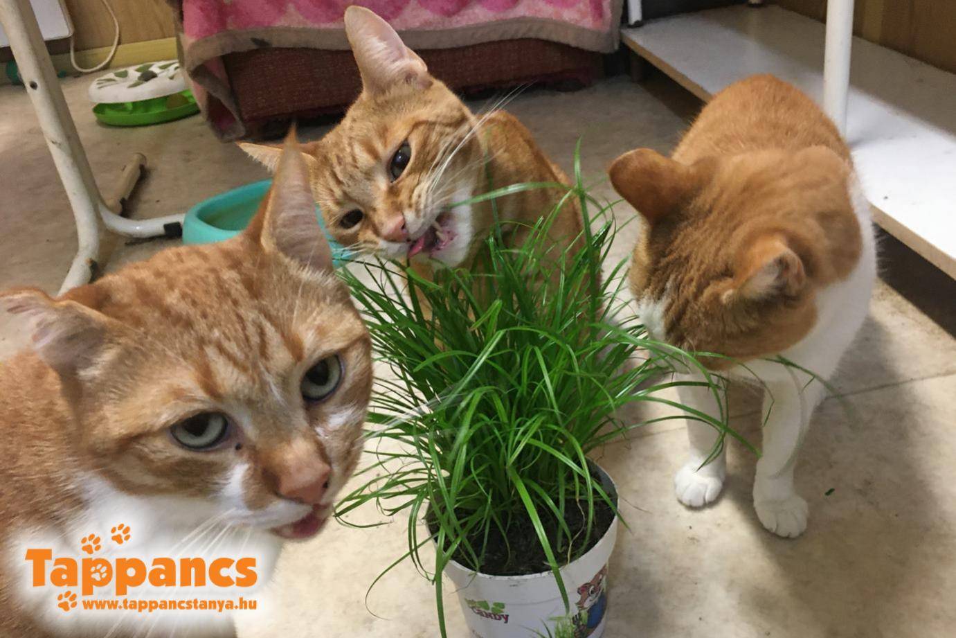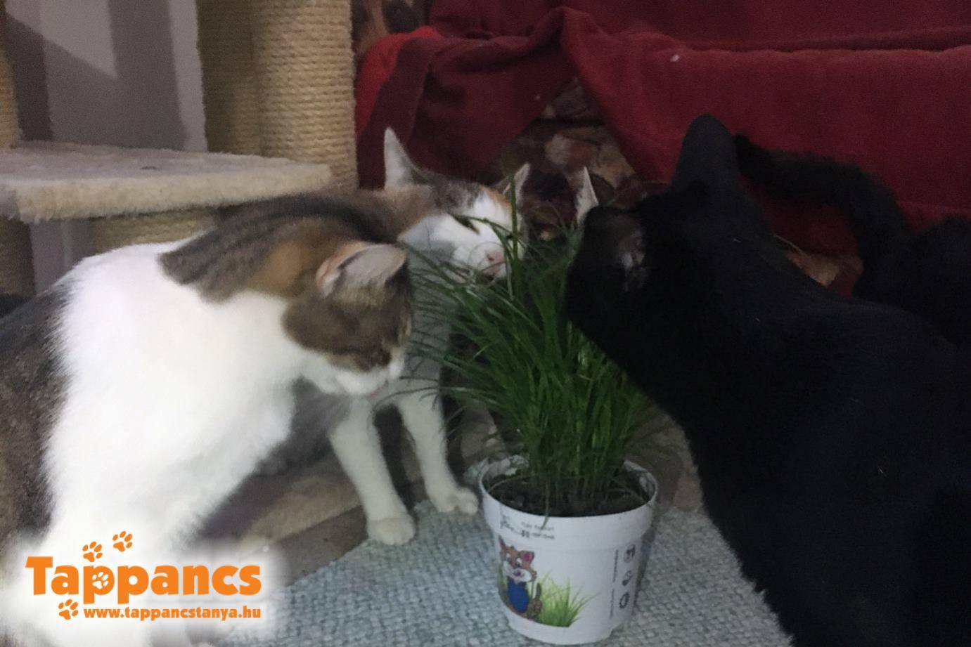 Szombaton önkéntes nap van. Csilla két cserép cicafűvel lepte meg a bársonytalpú delegációt. Nagy sikert aratott vele, cicáink imádták, nagyon szépen köszönjük! Közben több önkéntesünk tett látogatást cicáinknál és halmozták el őket sok-sok simivel, amit szintén nagyon köszönünk!