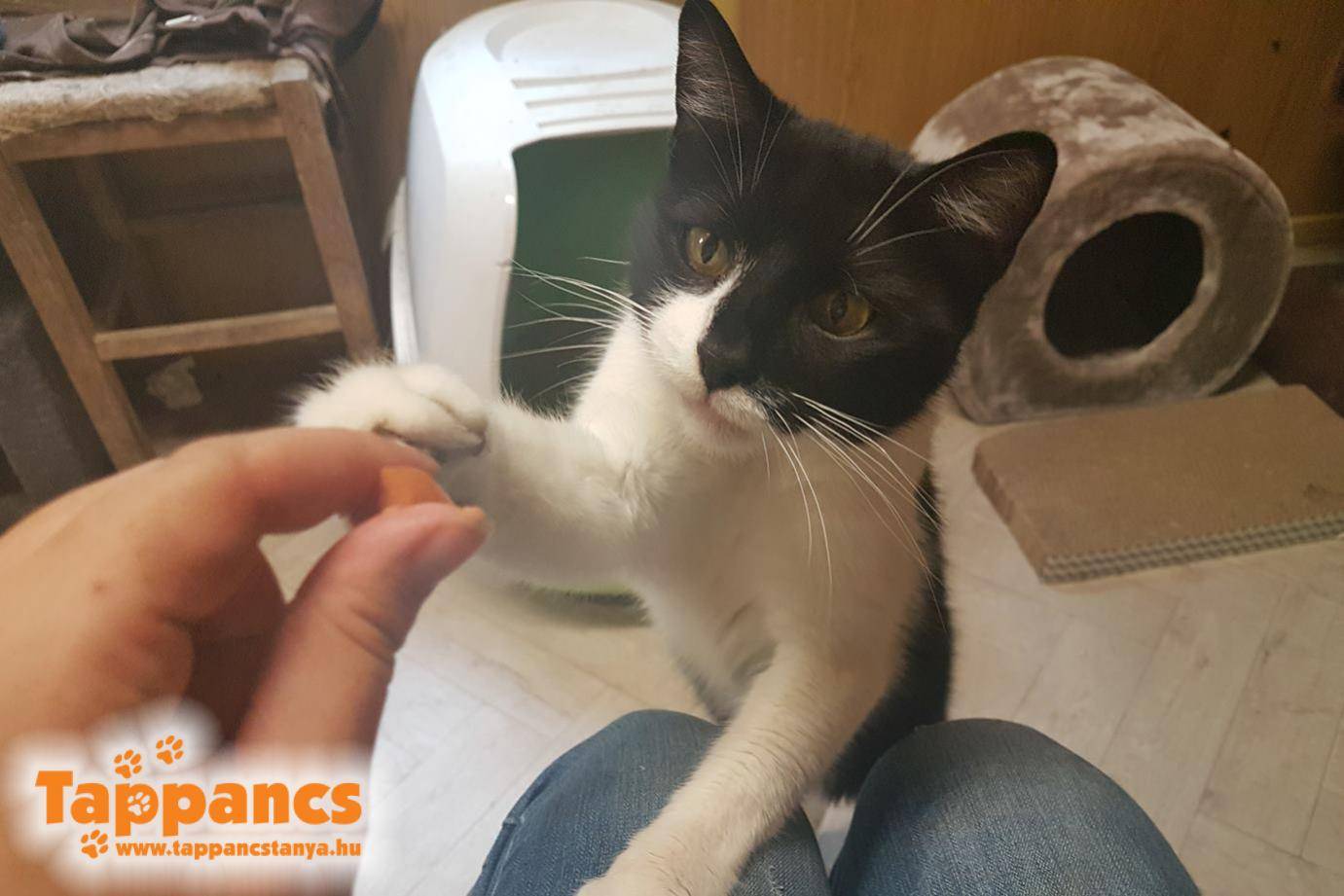 A pár érkezésekkor is elindult kifelé az ablakon, mikor a hölgy megsimogatta. Vett egy gyors kanyart és a tőle nem megszokott módon hangos dorombolásba kezdett. Úgy dugta a kis fejét, egész testtel bújt, hogy teljes ámulatba estem. Megható pillanat volt. A férfinek is ugyanilyen elánnal hízelkedett, azonnal megvolt az összhang. Dönci Pálmonostorára költözött, ahol már korábbi védencünk Sanyi és kis barátnője Bagi várták őt. Az első kapott fotók is bizonyították, Dönci köszöni szépen jól érzi magát, azonnal a férfi ölében találta meg a számításait, sok simogatásban részesül és továbbra is fel tudja porszívózni cicatársai kaja maradékát. Minden adott a boldogságához!