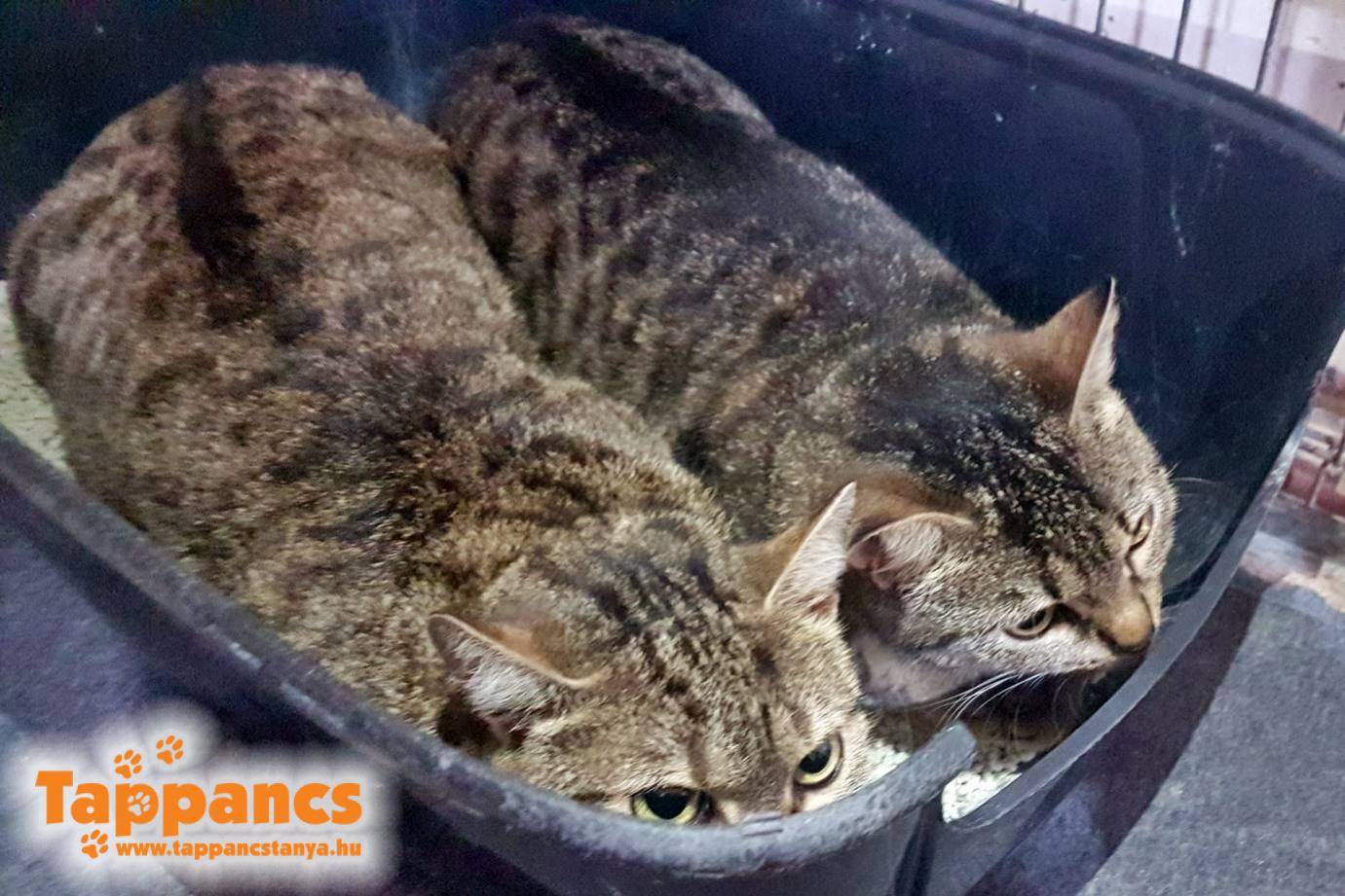 Ugyanakkor újabb lakókat is fogadtunk, először Tamit és Timit, majd Csipit és Csinit. Tami és Timi korábban utcacicaként, egy kolóniában éldegéltek. Egy kedves hölgy etette, gondozta őket, majd nem olyan rég segítséggel ivartalaníttatta a két nőstényt. A lakása fürdőszobájában biztosított nekik nyugodt helyet a lábadozásra, valamint igyekezett szocializálni őket, hogy ne kelljen újra az utcára kerülniük. Próbált gazdit találni nekik, de mindhiába. Az oltási programjuk végén ezzel mi is megpróbálkozunk, hisz gyönyörűek, fiatalok és a napok előrehaladtával egyre nyitottabbak felénk is. Timi egy év körüli, nagyon hangosan dorombolós, csupaszem leányzó, anyja Tami kicsit bizalmatlanabb, őt több mindent megélt már az utcán. Ennek ellenére nyugodtan fel lehet emelni, simogatható és szintén hangosan dorombolós, de gyakran visszahúzódik még a számára menedéket nyújtó alomtálcába. Rövid idő alatt sokat oldódtak, hogy mernek még bízni az emberekben, ezt csak is az eddigi etetőjüknek köszönhetik.