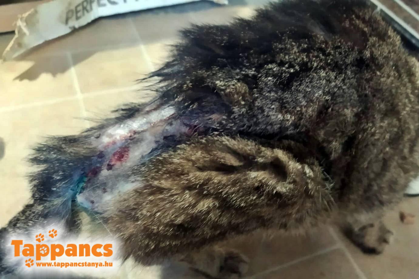 Majd jeleztek egy nagyon rossz állapotú cicát. Ő Szikiről került be, ugyanonnan ahonnan korábban Sherry is. Szintén kutyatámadás áldozata lett. Csúnyán szétmarcangolta a hátulját, valamint a comb belső részén is voltak lyukak. Az még hagyján, hogy sérült, de sajnos nem voltak frissek a sebek... A néni egy hete hallott cicanyávogást, de azóta nem találta, most botorkált elő szerencsétlen. A légynyűvek hemzsegtek a mély harapásnyomokban. Azonnal lefürdettük, majd kitakarítottuk és lekezeltük a sebeit. Kapott fájdalomcsillapítót, antibiotikumot, ahogy telefonos konzultáción állatorvosunk előírta. Végig együttműködő volt, majd szépen belehuppant az alomba, elvégezte a dolgát, és szívesen megette a kis elemózsiát, amivel megkínáltuk. Másnap mintha mi sem történt volna vele, jött-ment, hangosan jelezte, hogy enne már, mikor kerül ő sorra??? Sebei tiszták voltak, elégedettek voltunk a helyzettel, pedig nagyon ijesztő volt az élővilág a törzse hátsó részén...De gyors felejtette velünk Ludvigunk kicsattanó pozitivitása. Azért segítőnk, Adri elvitte Dr. Tímár Endre rendelőjébe, hogy megerősítést kapjunk, hogy mindent jól csináltunk, és a sebei makulátlanok. Étvágya is jó, de nagyon össze van sorvadva szegény. Kapott még vitamin injekciót, és folytatnunk kell a fájdalomcsillapító, antibiotikum kúrát.
