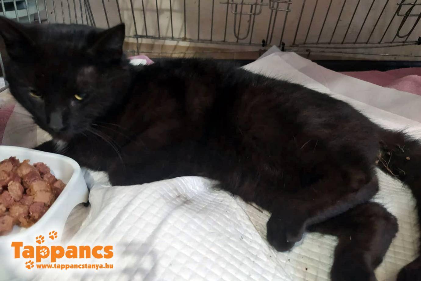 Egy férfi keresett fel minket telefonon, hogy reggel óta hangos macskasírást hall egy kocsi alól, lehet a cica megsérült. Időt és energiát nem sajnálva felkutatta, dobozba rakta és kihozta a menhelyre. Nagyon hálásak vagyunk, hogy nem ment el mellette és kihozta Rambót! Mert így neveztük el. Rambó minden porcikájában remegett és üvöltött a fájdalomtól, az ijedségtől. Az a hangos macskasírás nem az a szokványos cicanyávogás, hanem üvöltés, a hang, ami az ember agyáig hatol. Azonnal melegítettük és kapott fájdalomcsillapítót. A hátsó részét nem használja, azt már láttuk. Egyelőre "csak" úgy tűnik, láb törése van valahol, de vasárnap délután elég tehetetlenek vagyunk.... Csak bizakodni tudunk, hogy a fájdalomcsillapító mihamarabb hat és nyugodtan tud pihenni, átmelegedni és megnyugodni. Aztán hétfőn az első dolgunk lesz őt állatorvoshoz vinni. Sokan győzködnek minket, hogy a macskáknak kell a szabadság... Itt egy ékes példája, hogy a "kijárós macskák milyen boldogok"... Idén ő a harmadik, két héten belül a második "boldog" kijárós macska... És tele van a város balesetes cicákkal, van akiknek sikerül felépülnie, van akikhez későn ér oda a segítség, vagy azonnal szörnyet halnak. A macska ne legyen fogyócikk, ez már nem az a világ, ahol a városban szabadon kószálhat a cica, mert hatalmas a forgalom, rengeteg a rosszindulatú ember, és ők is érző lények, akik nem saját akaratukból élnek ott, ahol. Ösztönből mennek, és ha annyi fáradságot sem vesz az ember, hogy a magához vett állatot ivartalanítsa, hogy legalább a nagy menés- vágyat ezzel némileg visszafojtsa, akkor csak jelzem, hogy nem kötelező állatot tartani.... Nagyon szomorú, hogy még mindig itt tartunk az állattartásban... Rambó az Árvíz utca és a Damjanich utca sarkáról érkezett.