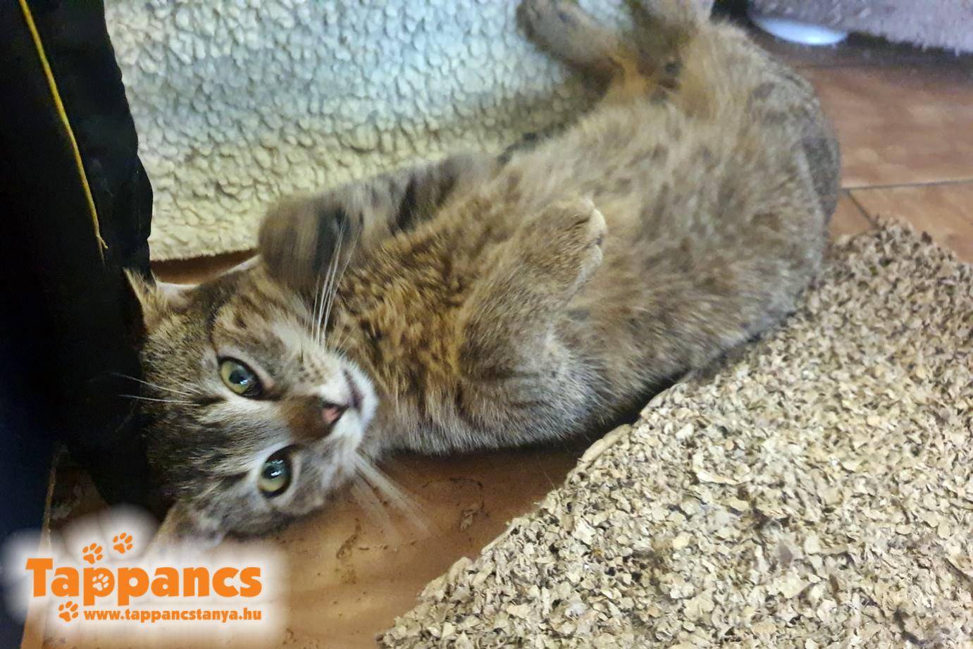 Balesetes cicánk, Boti olyan rohamtempóban gyógyul, nem is hiszünk a szemünknek. Már ott tart pár nap alatt, hogy a felülésből már bicegősen ugyan, de elkezdett járni. Nem győzünk ámuldozni és halomra csodálni őt!  Már annyira ügyes, hogy a pelust is lecserélhettük lapos oldalú alomtálcára. Néha vannak még balesetek, de a szándék megvan, csak a koordináción kell még csiszolni. Annyira ügyes és erős, arról nem is beszélve, hogy imádja a pocakját, mindig addig magyaráz és követelőzik, amíg nem ő kerül sorra, aztán két másodperc alatt mindent beszippant, és folytatódik a követelőzés. A napok előrehaladtával pedig némi séta időt is engedélyezünk neki, amíg kitakarítjuk a helyét. Ez annyit foglal magába, hogy végig megy a ketrecek előtt és megnézi a többiek mit esznek, esetleg maradt-e valahol egy potya falat, ami kiesett. Ha ez a körmenet megvolt, akkor szinte szabályosan rohan oda egyelőre még merevecske hátsó lábaival, és nagy fejét dugja oda simogatásra, ezzel ösztökélve, hogy haladjon az a reggeli vagy épp ebéd osztás.