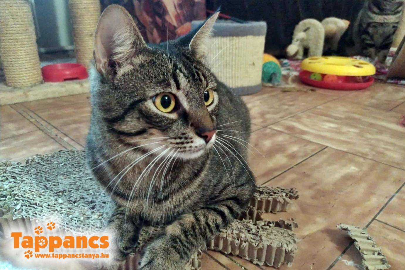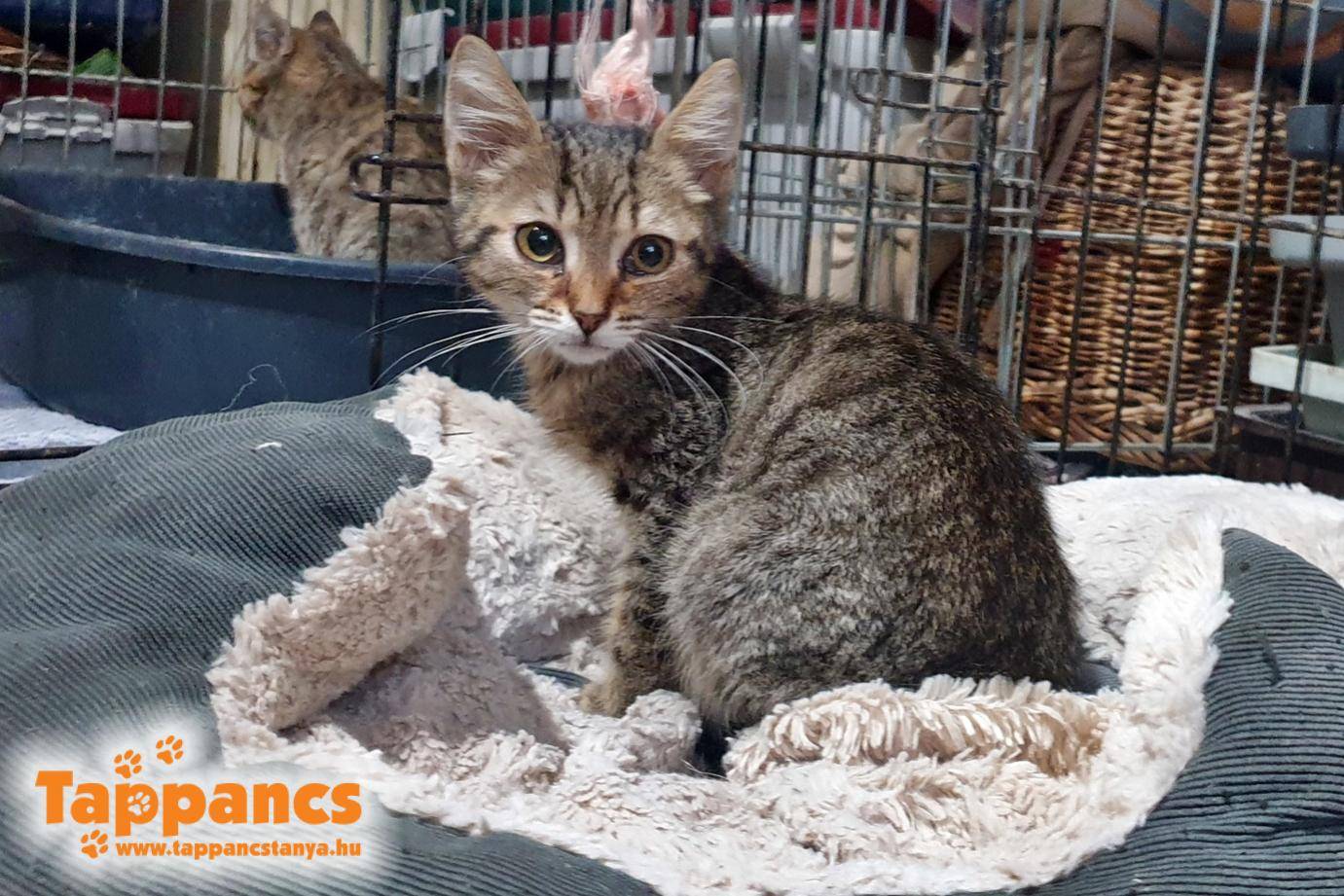 Egy olyan telefonhívást kaptunk, ami kicsit leverte az ékszíjat nálunk. Mindig igyekszünk reálisak és elfogadók lenni, de van amikor a döbbenettől nem sikerül. Totyának két hét alatt lejárt a mandátuma. Nem erre számítottak. Kérdeztük kis naivan, hogy mégis mire? Milyen elvárásunk van egy aktív kölyök cica esetében? Az otthon végzett munkába bezavart, mert természetesen mindig az emberen, emberrel akart lógni, de ezt tudták is, hogy lételeme az ember közelsége. Nem szobanövény, hogy 8 órában egy helyben üljön, sőt egy kölyök még nem alussza át a napot. Majd ebben az időben elkezdett szorongani, és képes volt rápisilni a szőnyegre is. Ha a pár férfi tagja otthon volt, nem volt ilyen jellegű gond. Kolléganőm közölte, hogy akkor azonnal hozzák vissza, és így is tettek. Megérkezett Totya, aki nem értette mi történt, és mi rosszat tett. Fel volt zaklatva. Kicsit mi is, mert nagyon cingár és csapzott volt a szőre a lányokkal ellenben, akik nem hagyták el a menhelyet, és még betegek is voltak. Totya visszakerült a felkészítőszobába, a tesói mellé, de egyelőre nem volt boldog...