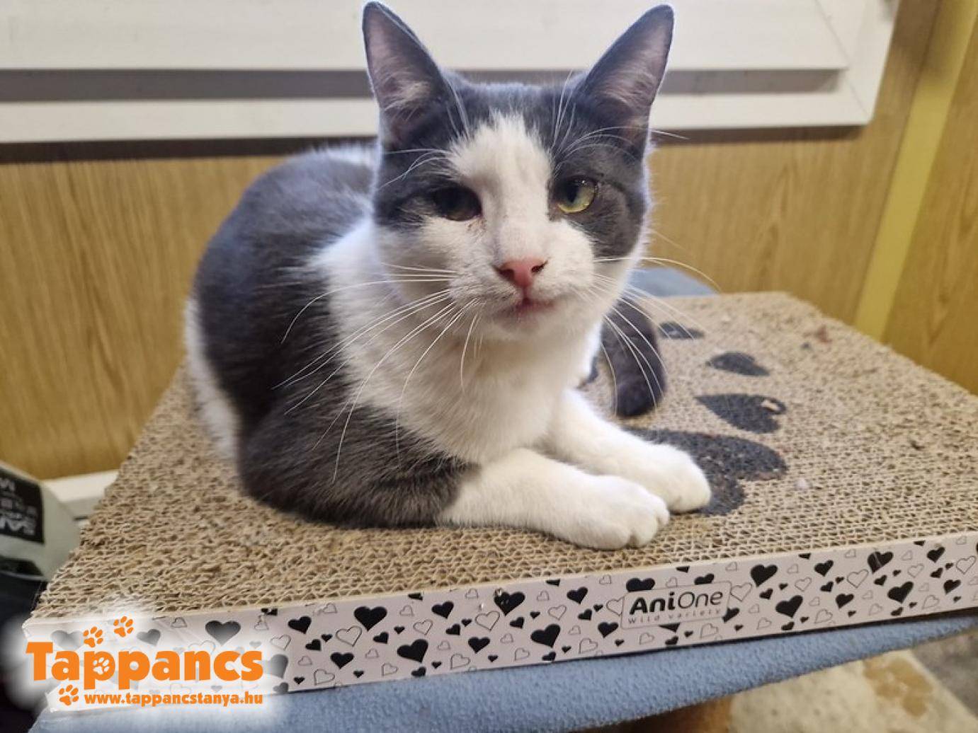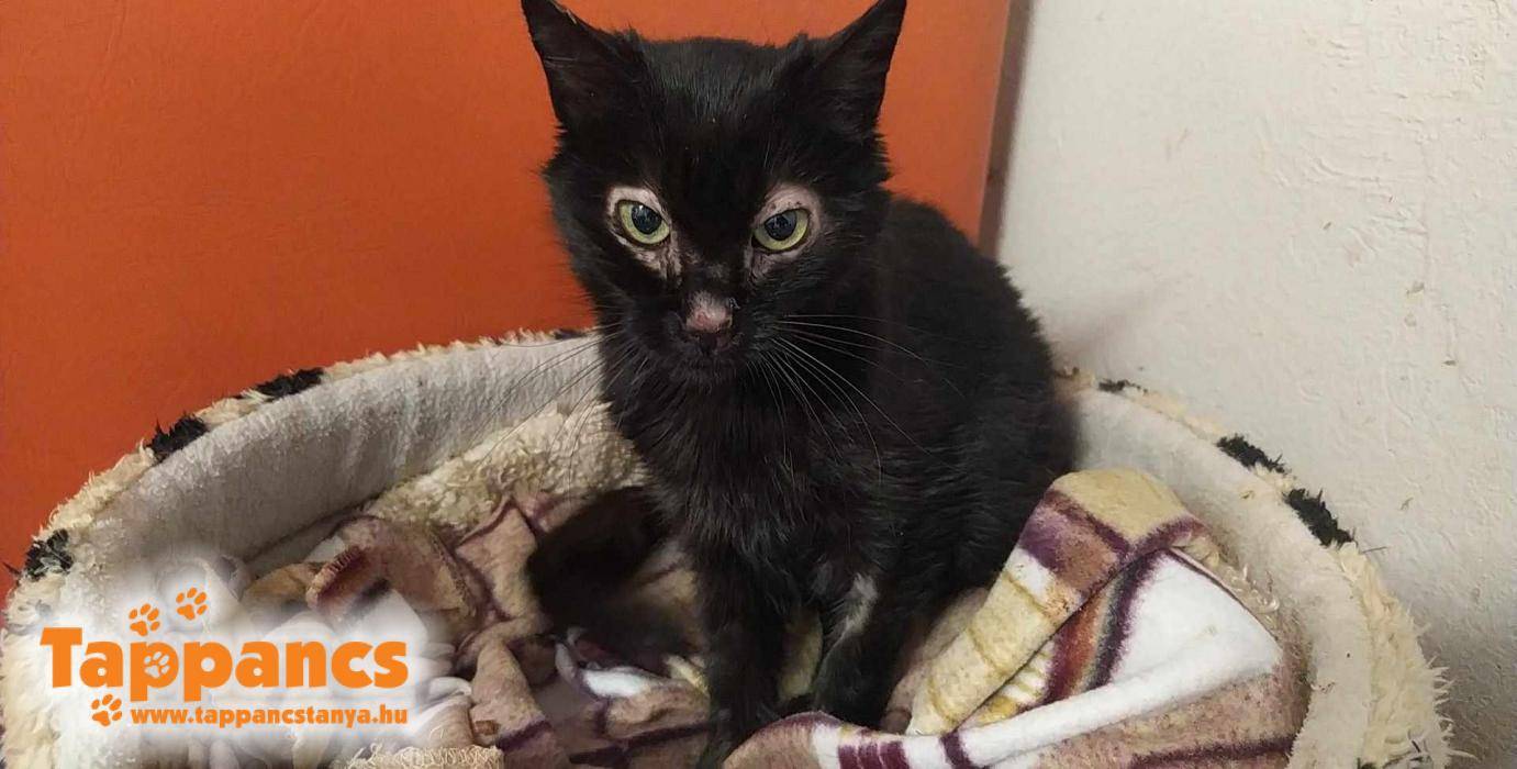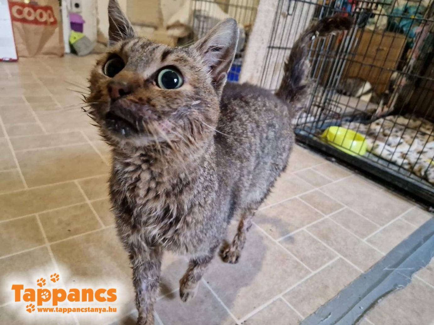 Hétvégén egy cica érkezett a menhelyre, ki egy kolóniánál bukkant fel, nagyon rossz állapotban, betegen. Az etető hölgy elvitte orvoshoz, de ennek ellenére sem lett jobban. Egy papírdobozban húzta meg magát, enni nem nagyon tudott, és oda sem fért az ételhez, mert a kolónia nem fogadta be. Csont és bőr, nem is vészelte volna át a telet ebben az állapotában. A cicát nőstény cicaként titulálták, de magassága miatt uniszex nevet kapott, így Kollázs lett. A szájából ömlött a nyála, sőt az egész testén nyállal átitatott volt a bundája, ragacsos, sűrű és vastagon állt rajta mindenhol a szutyi. Emiatt nem is tudtuk megnézni a nemét, mert jóformán semmi sem látszott. Arcáról takarítottuk le a nyálköpenyt minden alkalommal, hogy tudjon enni pempőt, szerencsére azt tudta lefetyelni egyedül is.