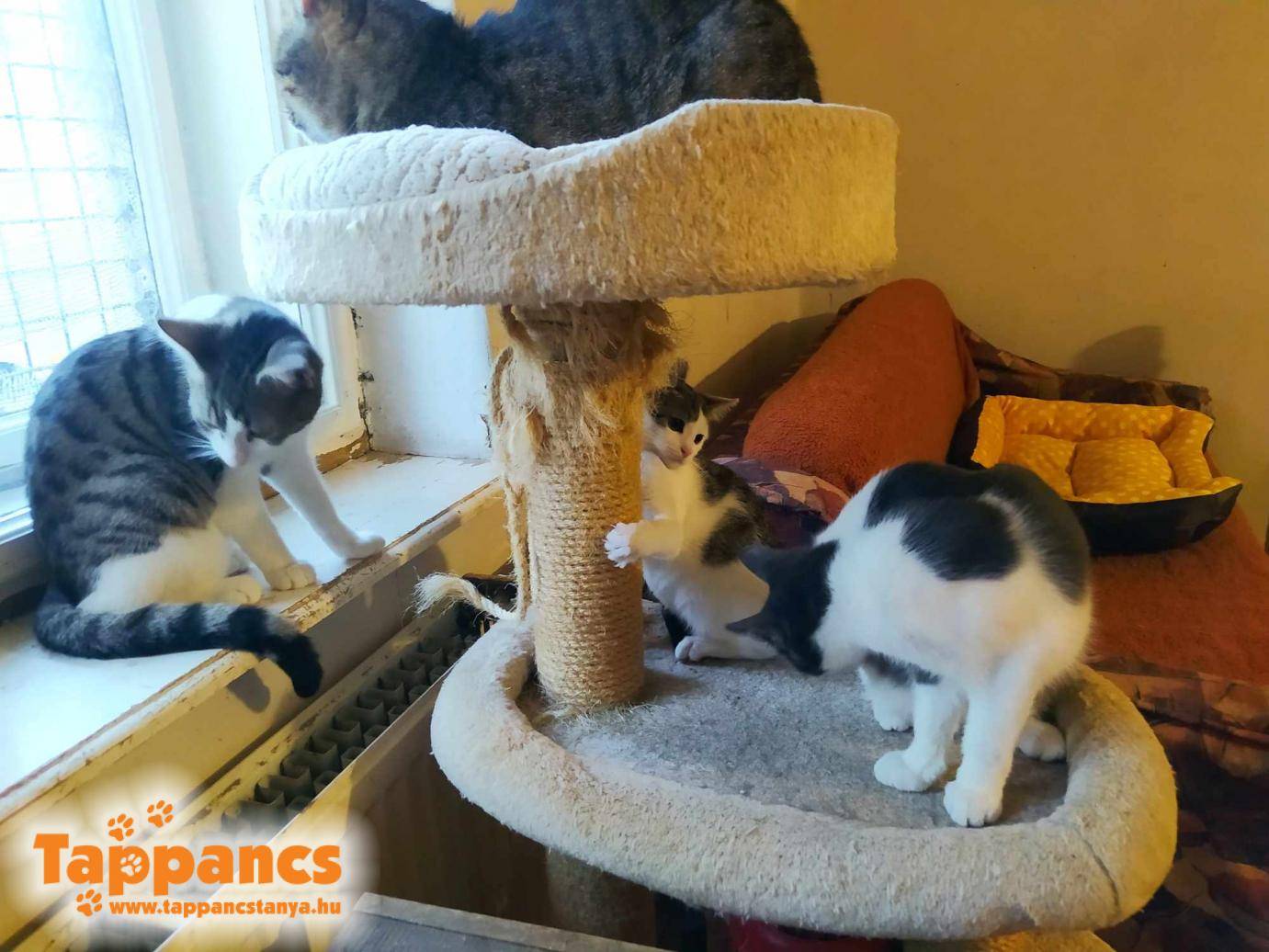 Velük tartott Lóri is, mivel ő már ivartalanított kandúr, ezért csak tesztelve lett, szintén negatív eredménnyel. Lóri gyanúsan otthon érezte magát bent, vélhetően élt ő szobacicaként is valamikor, mert amint kialudta magát, takarításkor kijött, és első dolga volt a kaparót meggyötörni, majd ellabdázgatott egymagában egy plüss lasztival, amit az asztal alól halászott ki.