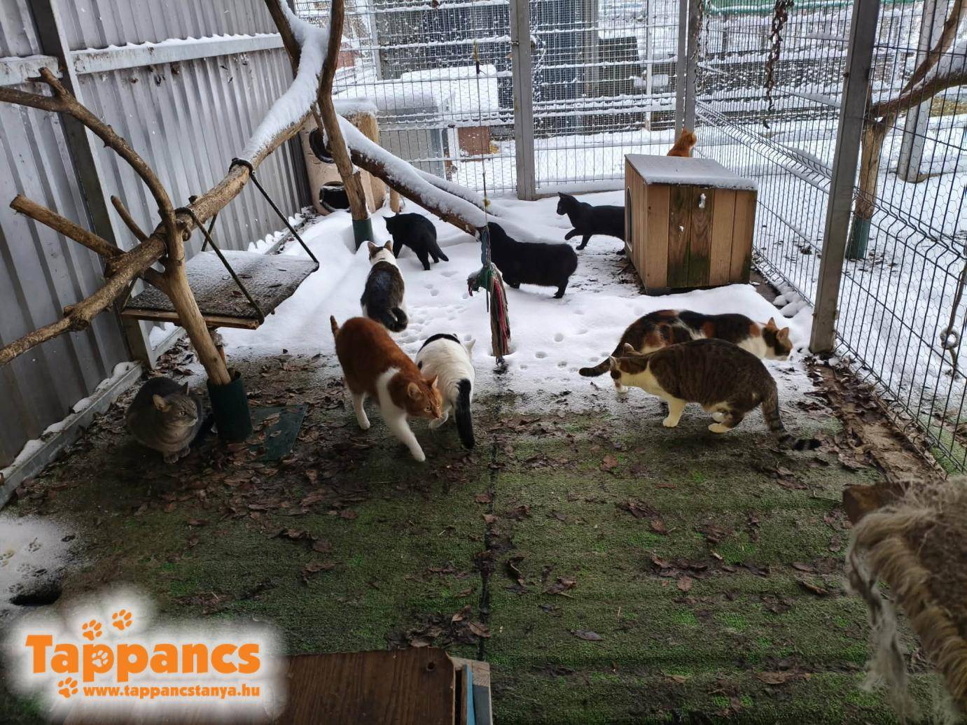 A kis szoba lakói ennél sokkal óvatosabbak voltak, ott csak Poppy és Kleopátra képviselték a szobát, ők voltak elég bátrak és érdeklődőek, hogy puha mancsaikat összehavazzák.