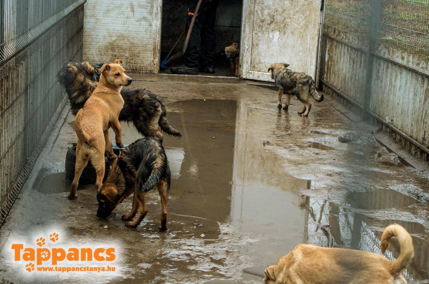 Egyre hűvösebb reggelekre ébredünk, ráadásul már napközben sem sikerült legalább néhány óra napsütést elcsípni. Reggel a hideggel, napközben az esővel harcolunk, szinte az egész menhely úszik a csapadék miatt. A múlt hétvégi eső nyoma még nem múlt el, hiszen minden éjszaka megfagy, napközben meg még esik rá, így szinte lehetetlen a takarítás. A kölykös kennel ajtaja minden éjszaka csukva van, hogy melegben aludhassanak, de napközben igénylik, hogy kint játszassanak. Az ajtónyitás utáni első dolgunk kiseperni a vizet az udvarról, hogy szaladgálni tudjanak. Az udvar homokkal fedett, nem beton, de ilyen időben képtelen ennyi csapadékot elszívni a föld.