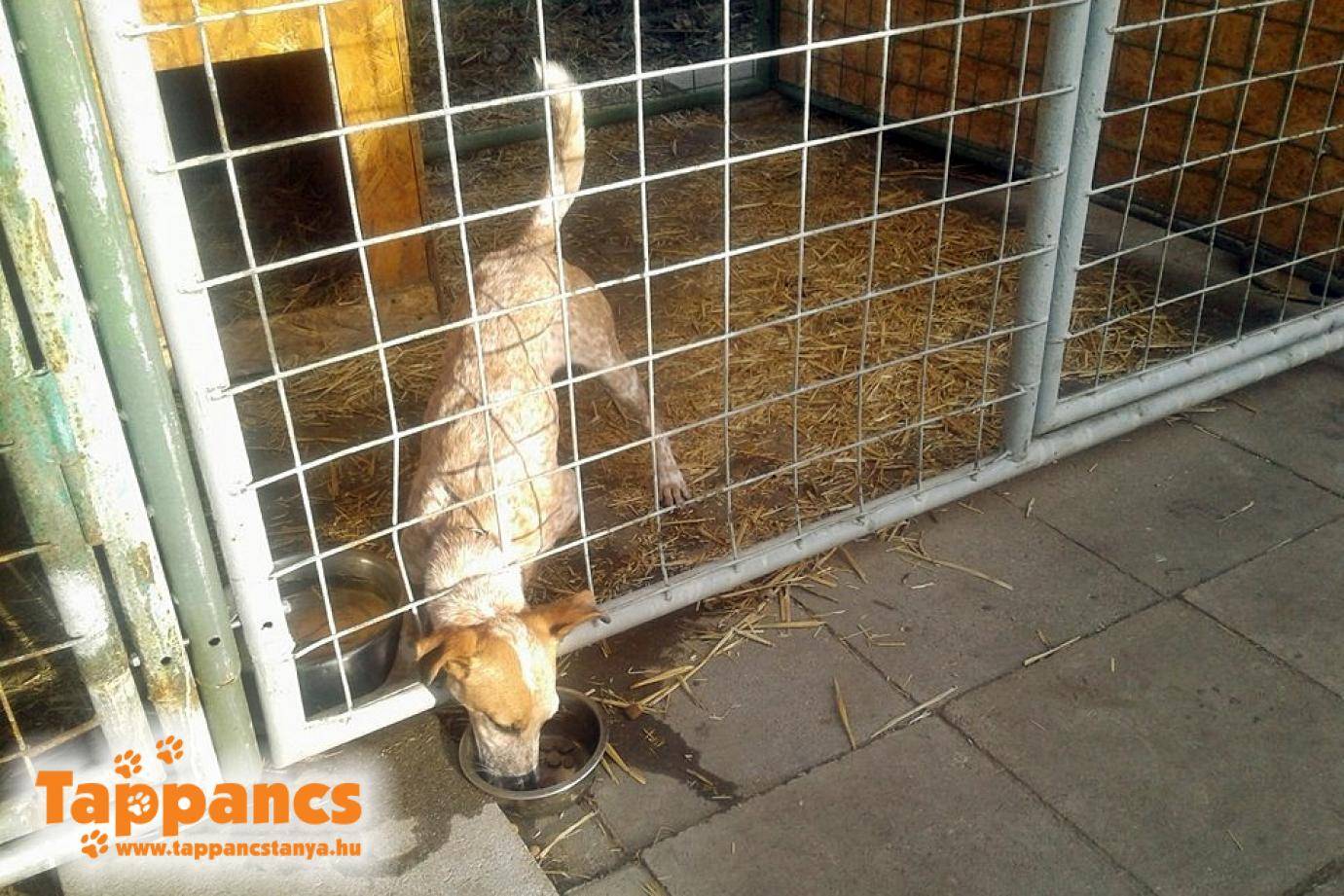 Vannak kutyák a menhelyen, akik egész egyszerűen mindig éhesek. Teljesen mindegy, hogy mit esznek aznap, és mennyit, amit eléjük rakunk, azt szabályosan felszippantják. Morzsi is azon menhelyi kutyák közé tartozik, akiknél központi téma, hogy mit ehet, és mikor. Már a talicska hangjára is felizgatja magát, a tányérok csörgése, és a napi eledel kiosztása pedig számára a nap fénypontja. A kennelfelújítási munkálatok miatt átmenetileg mobilkennelbe kényszerült lakóink voltak épp soron az ebédeltetésben, de a telefon folyton csörgött, így nem tudtam ugyanabban a tempóban eléjük rakni az ebédet, mint ahogy a társam osztotta. Morzsi egy ideig szemrehányóan nézte, ahogy én még sor másik végében ügyködöm, és telefonálok, mikor is ő megunta a várakozást, és önkiszolgáló módba kapcsolt. Mivel épp akkor tettem le a telefont, volt szerencsém lencsevégre kapni a mutatványt. Morzsinak tehát be sem kell rakni a kennelbe a tányért, ő bárhogy megoldja az evést!