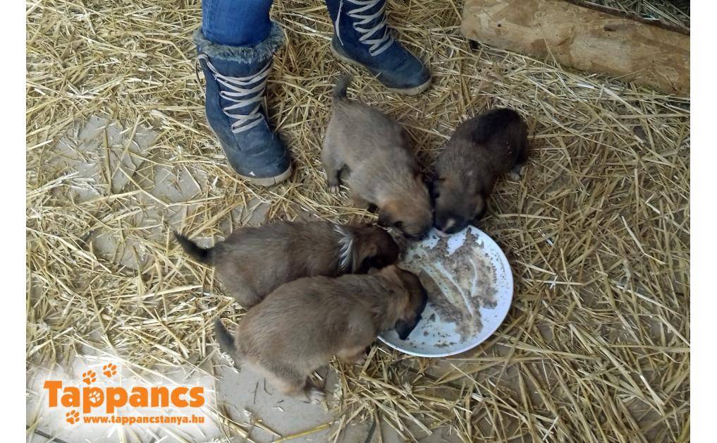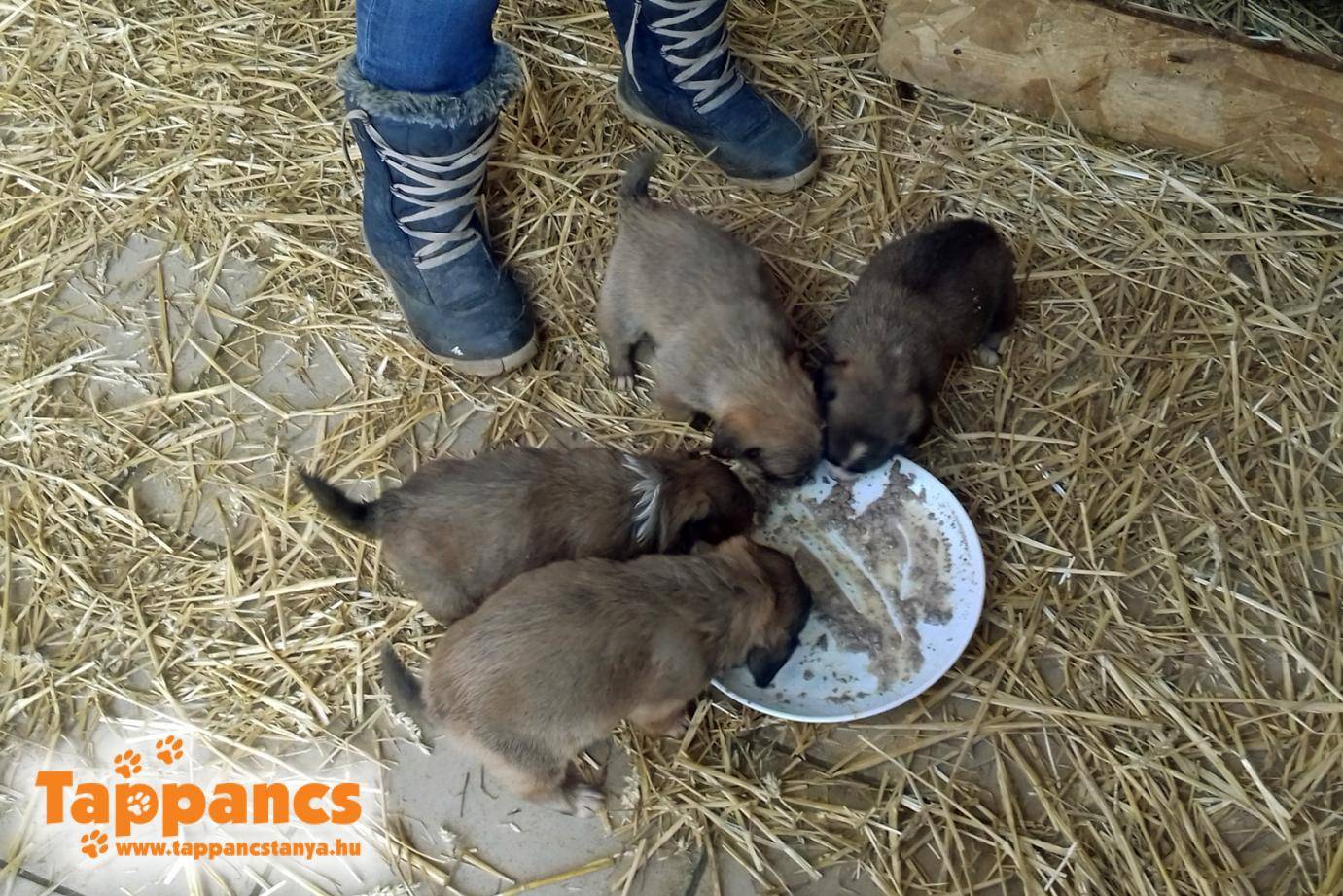 A kicsik már kijárnak a házból enni, és hangos vakkantással jelzik, ha éhesek, vagy kommunikálni szeretnének. Amikor meglátnak minket már csóválják is a pici farkincájukat, és osonnak elénk.